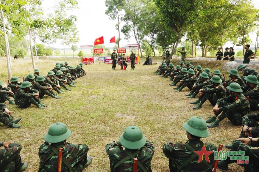Giờ giải lao trên thao trường của chiến sĩ mới Trung đoàn 4 (Sư đoàn 5, Quân khu 7). Ảnh minh họa: qdnd.vn