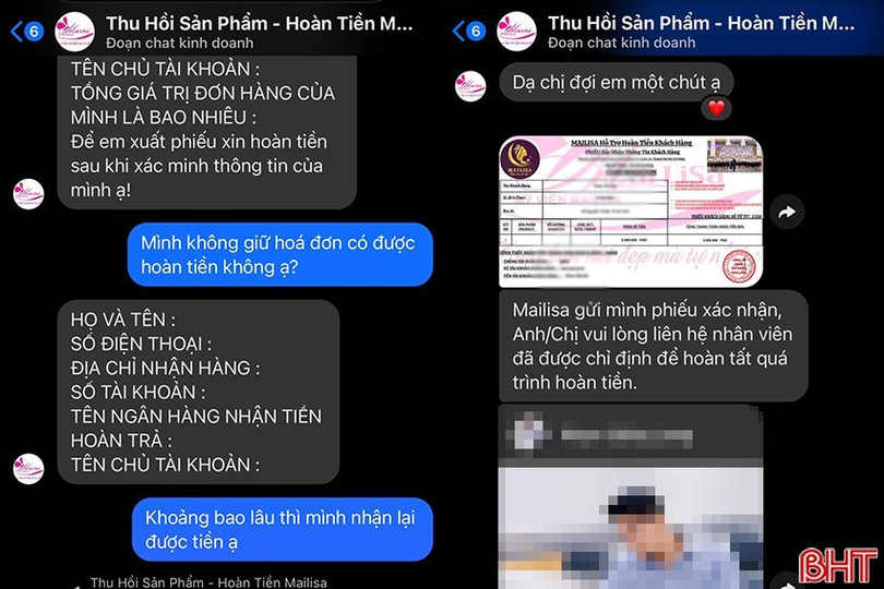 Khi trao đổi mong muốn trả lại sản phẩm, nhận lại tiền, chị M. được yêu cầu cung cấp các thông tin cá nhân như: họ tên, địa chỉ, số điện thoại, số tài khoản ngân hàng… để xác minh.