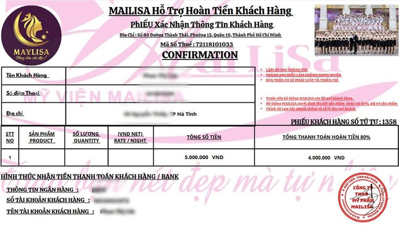 Mặc dù không có bất kỳ hóa đơn nào liên quan đến việc sử dụng sản phẩm Mailisa, chị M. vẫn được xuất phiếu hỗ trợ hoàn 4 triệu đồng.