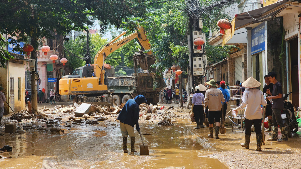 Tại tổ dân phố 2 Hợp Giang, phường Thục Phán (Phố Cũ) nơi từng là vùng ngập sâu nhất trong đợt hoàn lưu bão số 10 và 11, hơn 160 hộ dân bị ngập sâu, nhiều gia đình phải vội vã di chuyển lên tầng cao hoặc sang nhà họ hàng để tránh lũ. Khi nước rút, khắp khu phố chỉ còn lại lớp bùn dày, đặc mùi tanh, ẩm ướt, khiến việc sinh hoạt trở nên vô cùng khó khăn.