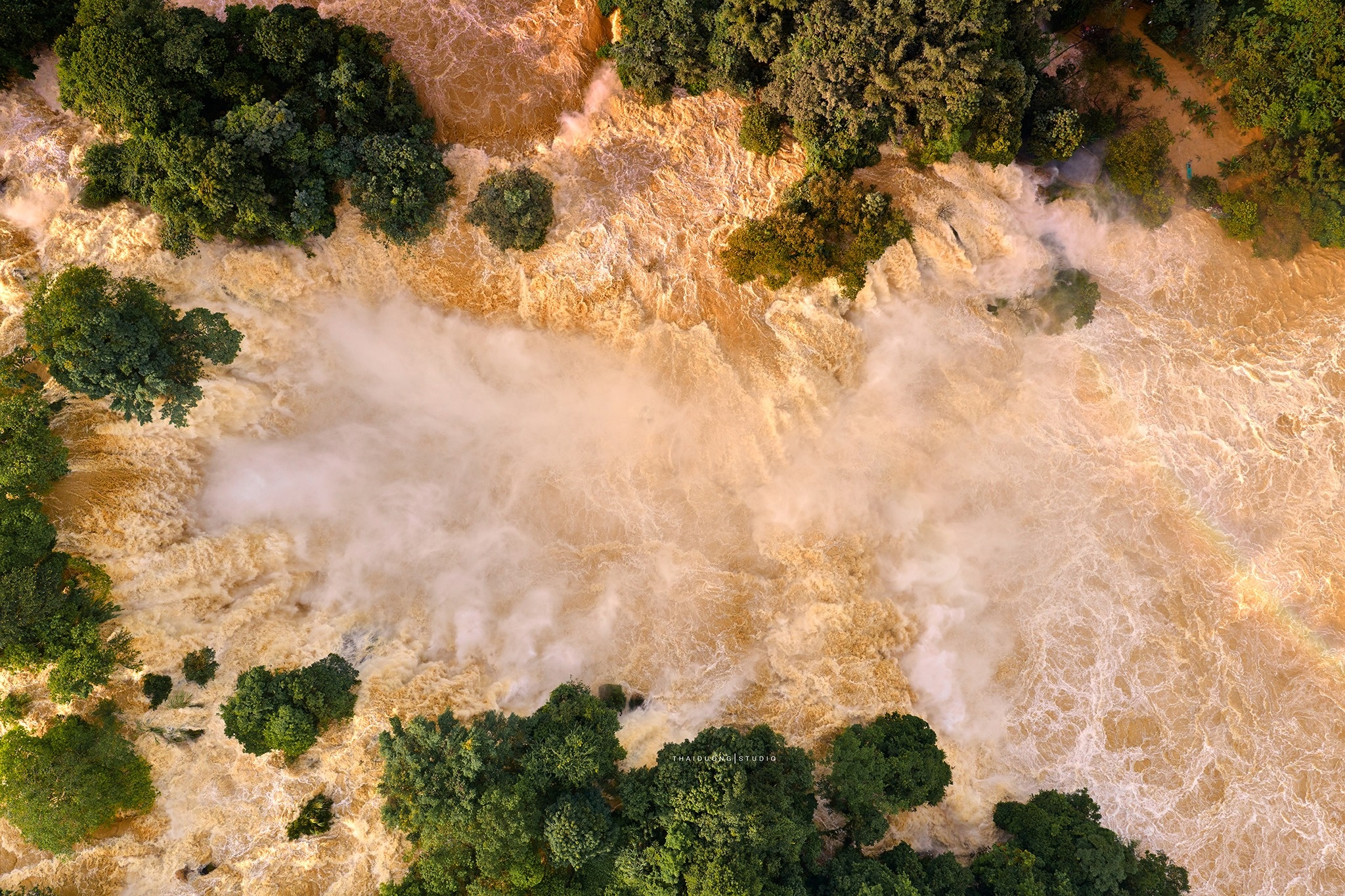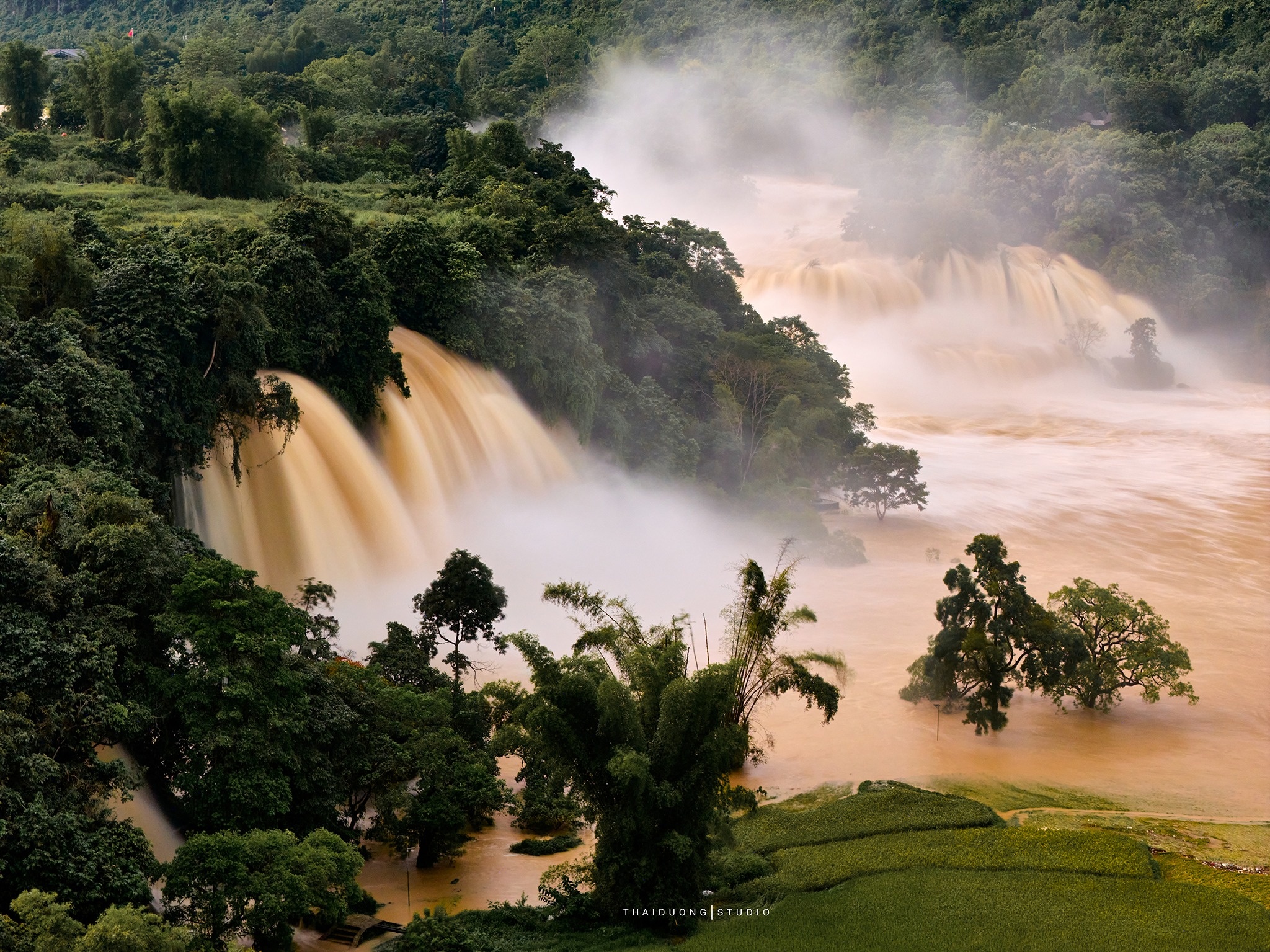 Ngày 9/10, hình ảnh thác Bản Giốc (xã Đàm Thủy, tỉnh Cao Bằng) nước chảy cuồn cuộn, dữ dội và chuyển màu đục ngầu được chia sẻ rộng rãi trên mạng xã hội. Trao đổi với Tri Thức - Znews, Thái Dương (ngụ xã Trùng Khánh, tỉnh Cao Bằng), chủ nhân bộ ảnh, cho biết ghi lại khoảnh khắc hiếm thấy của thác Bản Giốc vào ngày 1/10 khi cơn bão số 10 (Bualoi) đổ bộ, hoàn lưu bão ảnh hưởng các tỉnh phía Bắc.