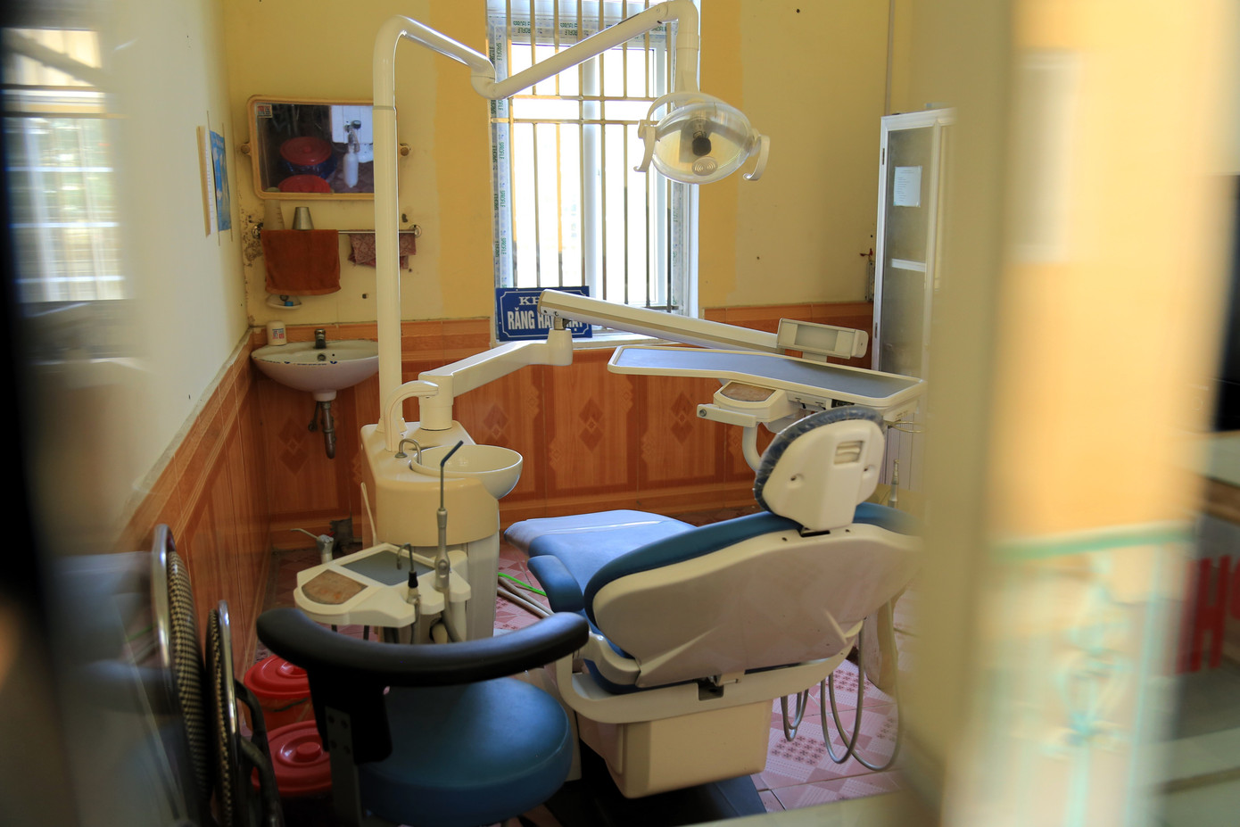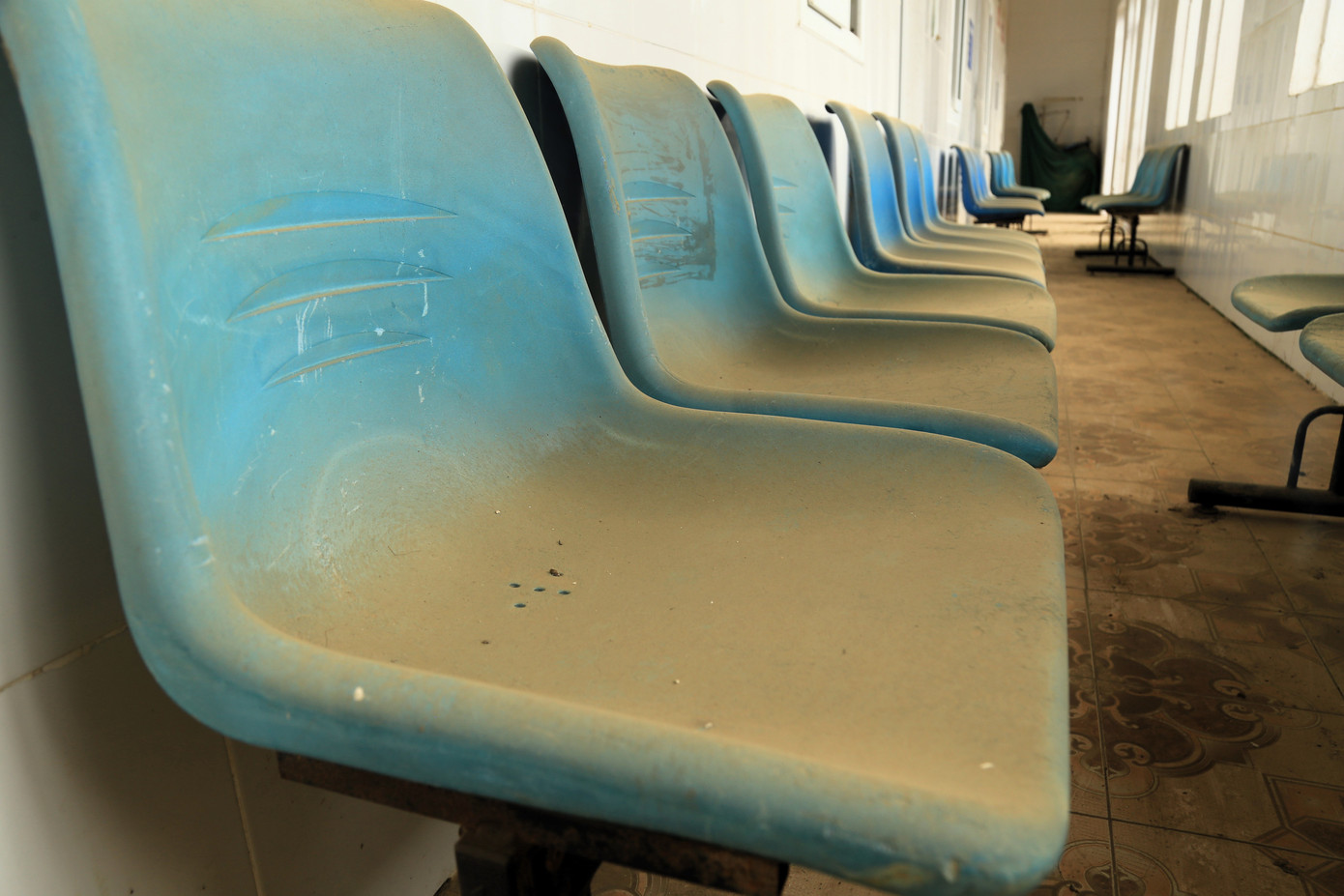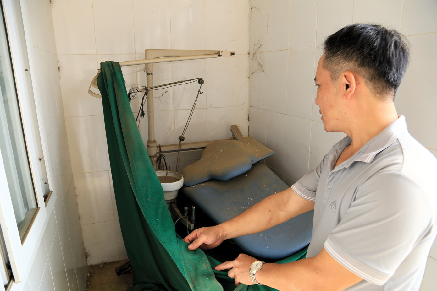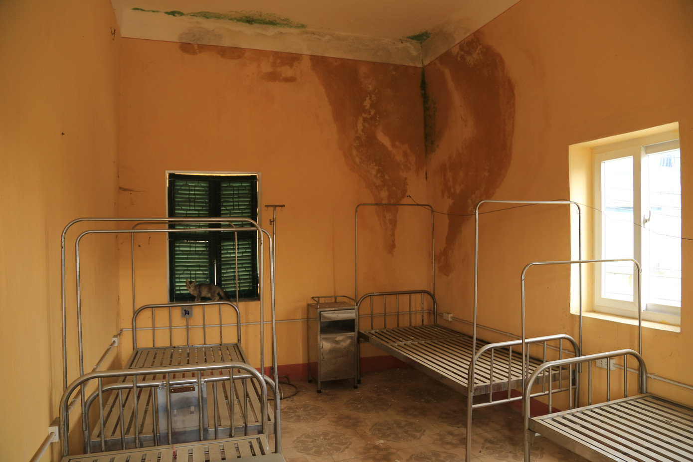 Bên trong bệnh viện, cơ sở vật chất và trang thiết bị phủ đầy bụi, hỏng hóc nặng.