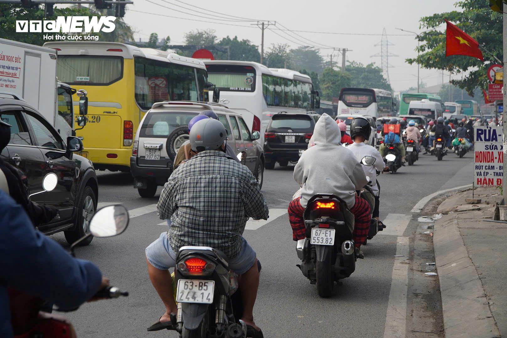 Trên Quốc lộ 1 và tuyến dẫn vào cao tốc TP.HCM - Trung Lương, phương tiện nối đuôi nhau hướng về miền Tây. Một số thời điểm xe chạy chậm do mật độ đông, song chưa ghi nhận tình trạng ùn ứ kéo dài.
