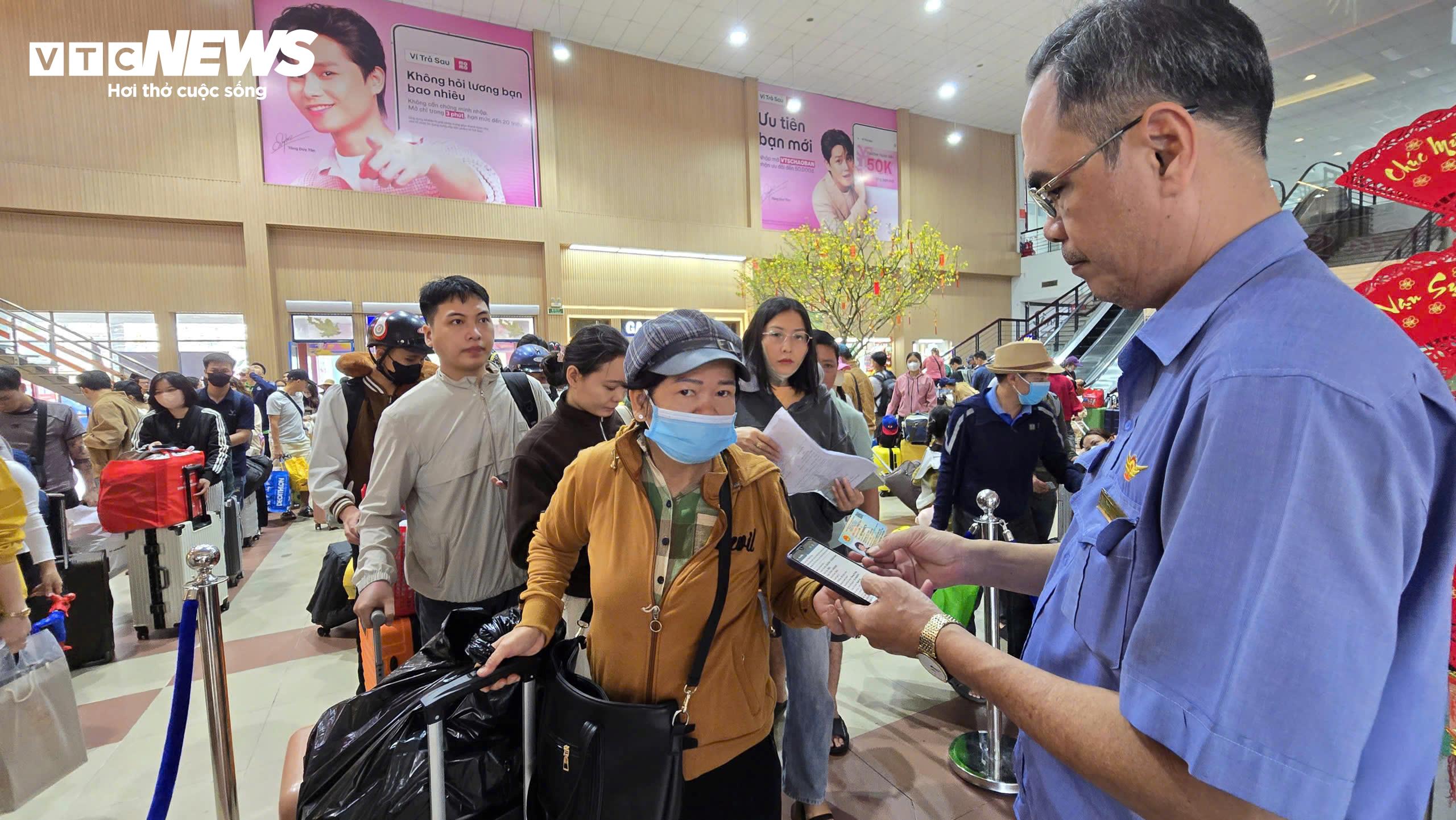 Dù giao thông bên ngoài khá “dễ thở”, ông Trần Minh Đức, Phó Giám đốc Chi nhánh Vận tải Đường sắt Sài Gòn, cho biết hôm nay vẫn là ngày cao điểm nhất của đợt Tết, với 17 chuyến tàu phục vụ khoảng 8.000 hành khách. Tuy nhiên, nhờ phân bổ khách hợp lý và nhân sự làm việc 100% công suất, quy trình kiểm soát vé diễn ra nhanh chóng, hạn chế ùn ứ.