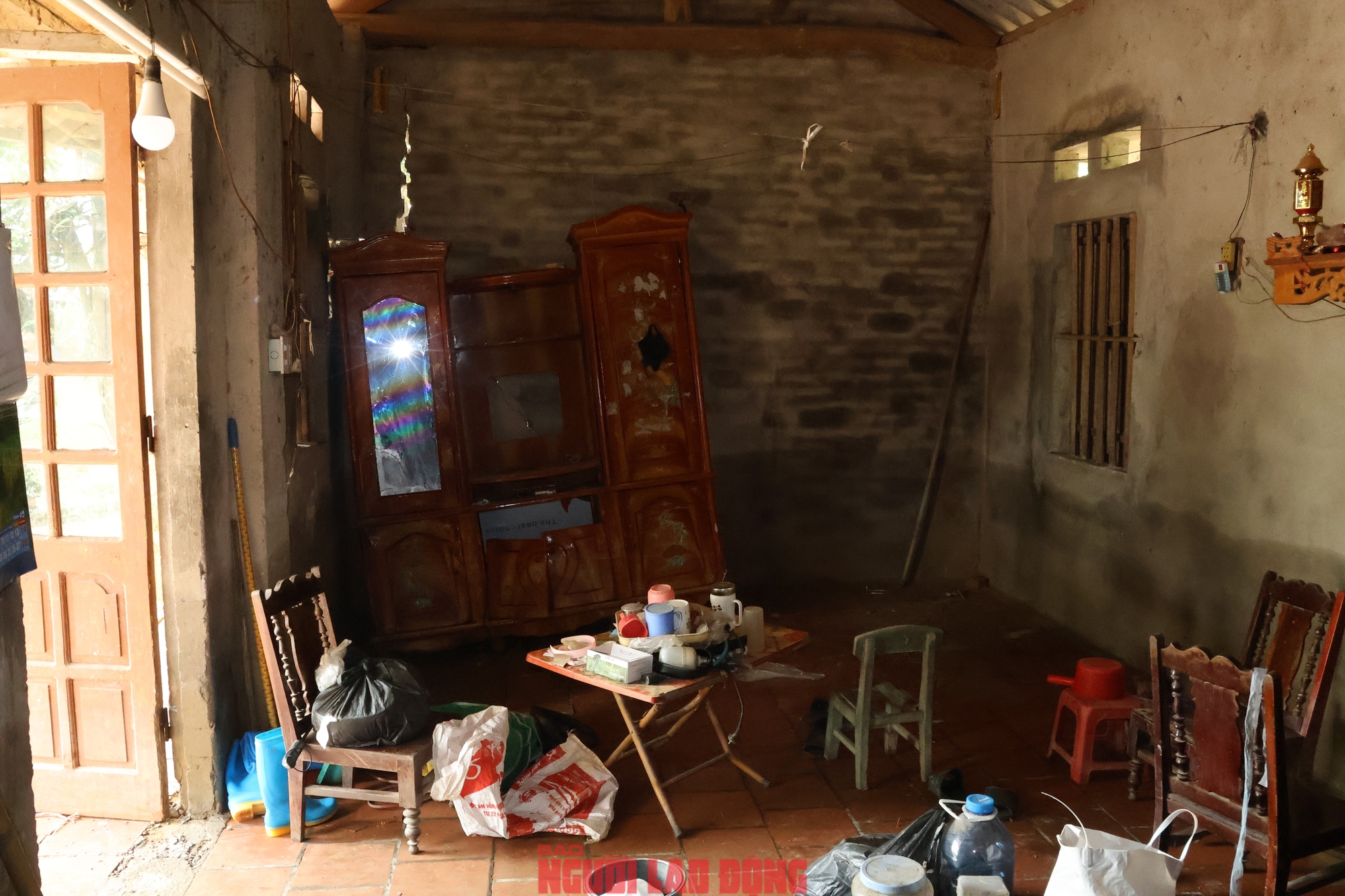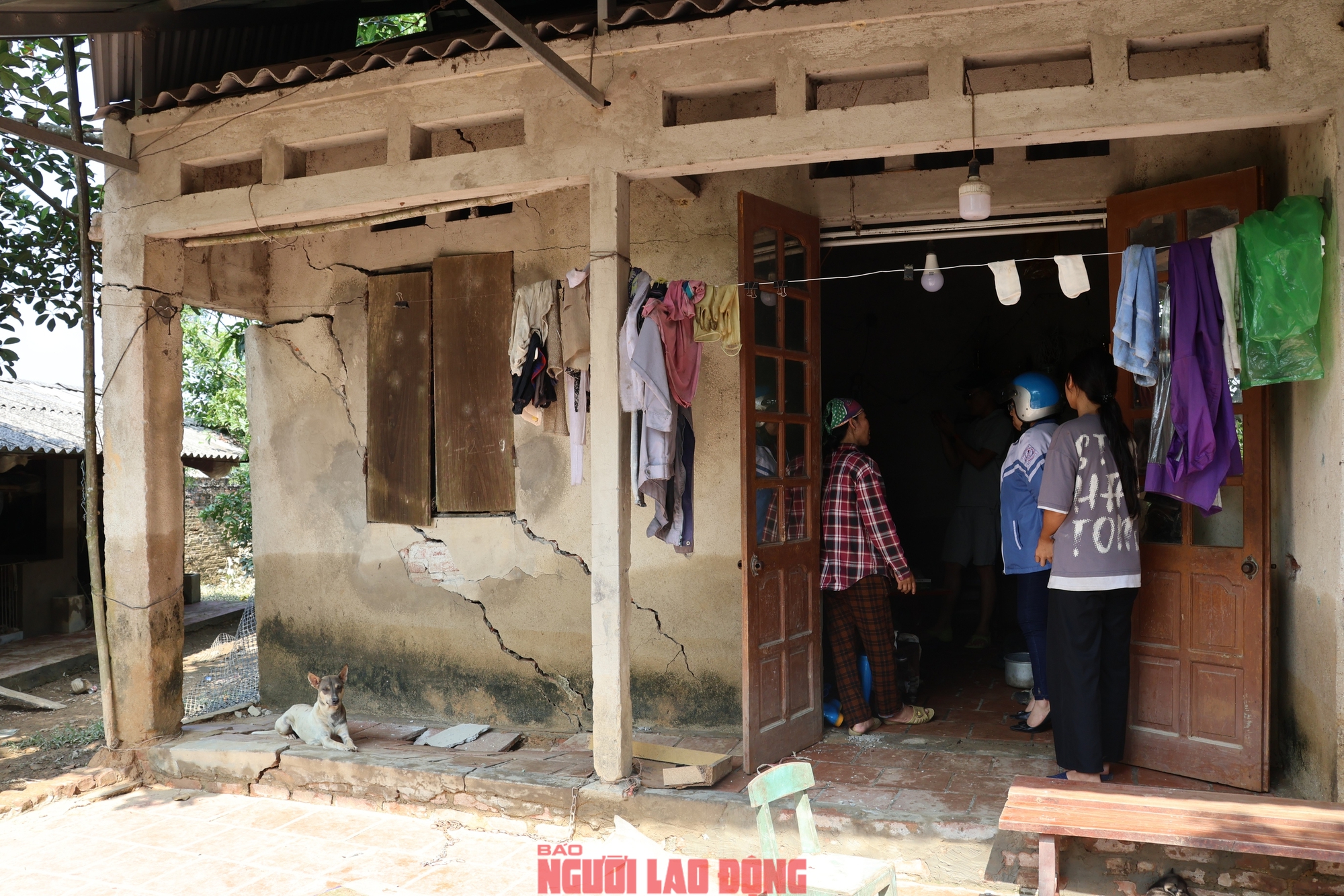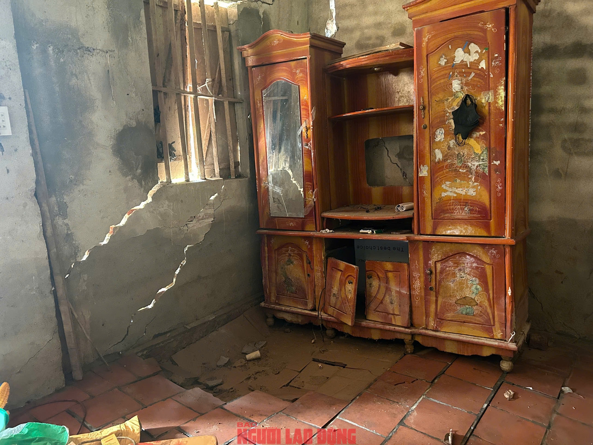 Gia đình bà Dương Thị Liên ở xóm Vũ Chấn, xã Điềm Thụy là hộ cận nghèo. Do mưa lũ, ngôi nhà đã bị sụt lún và nứt toác tường, có nguy cơ đổ. Ảnh: Văn Duẩn