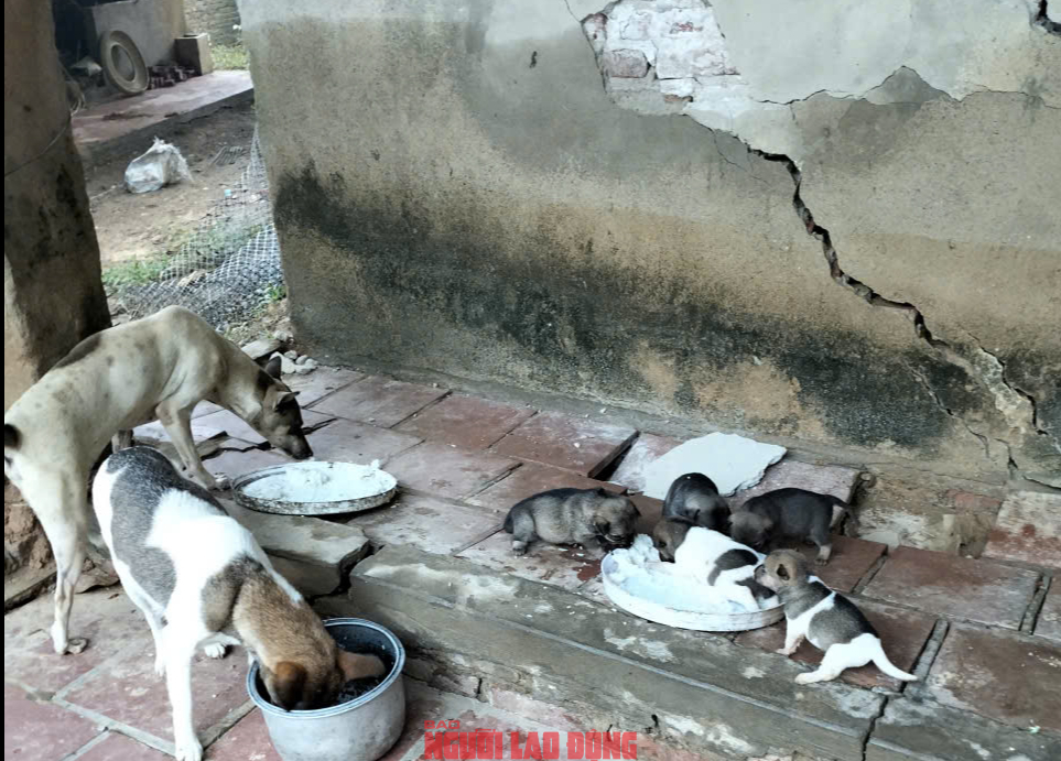 Ngoài bộ bàn ghế cũ kĩ, sau lũ, gia đình bà chỉ còn đàn chó con vừa mới đẻ