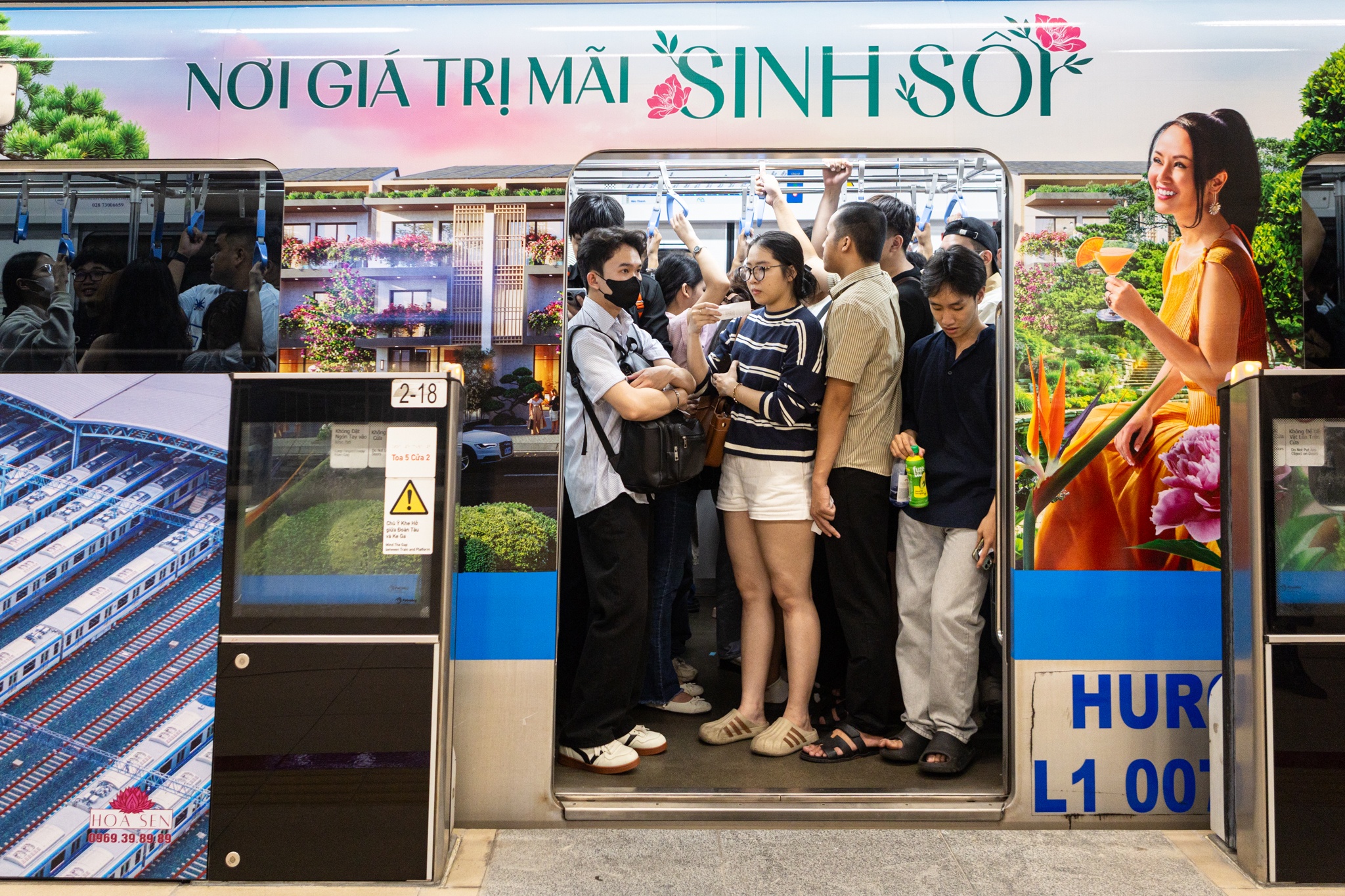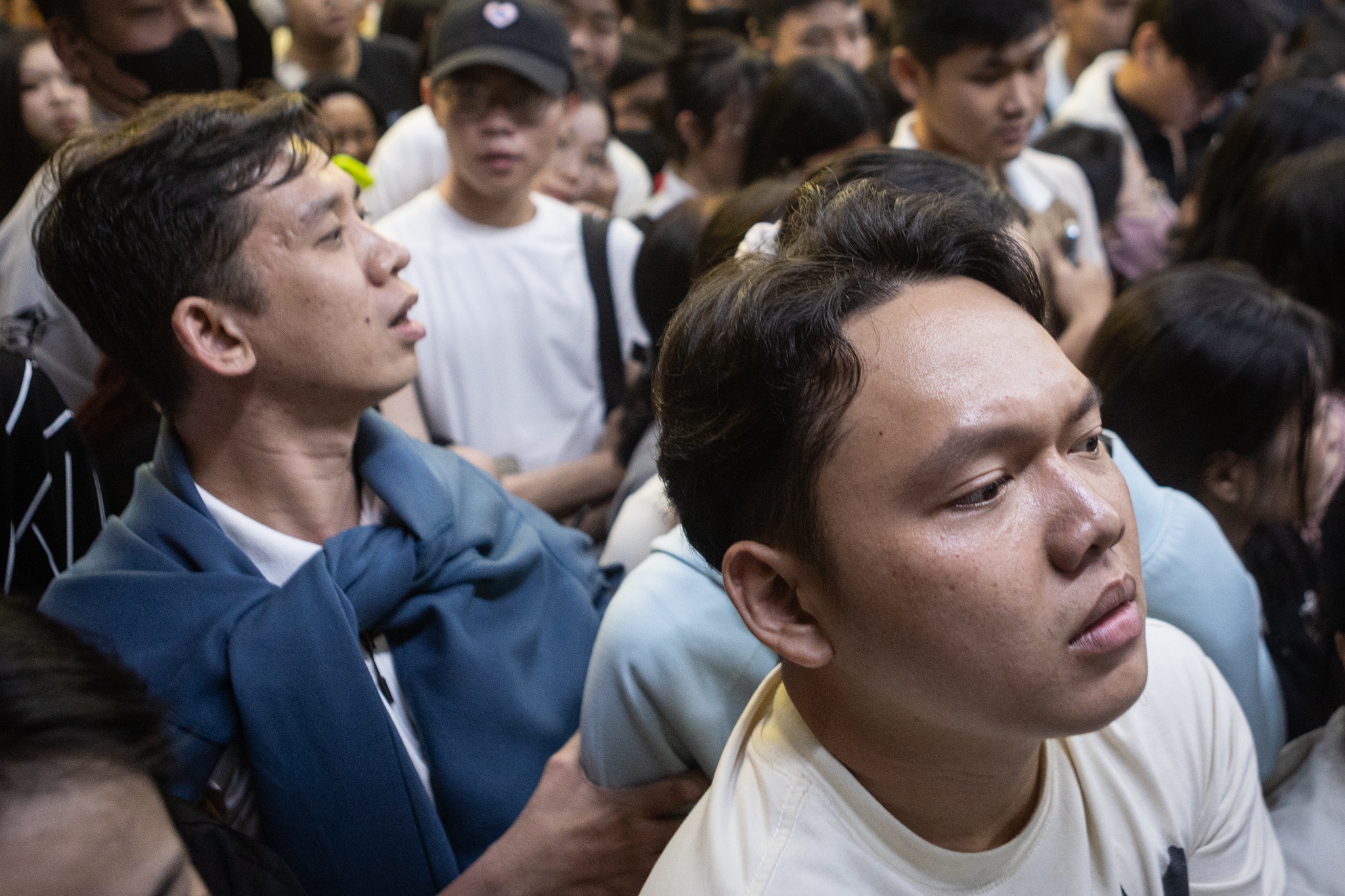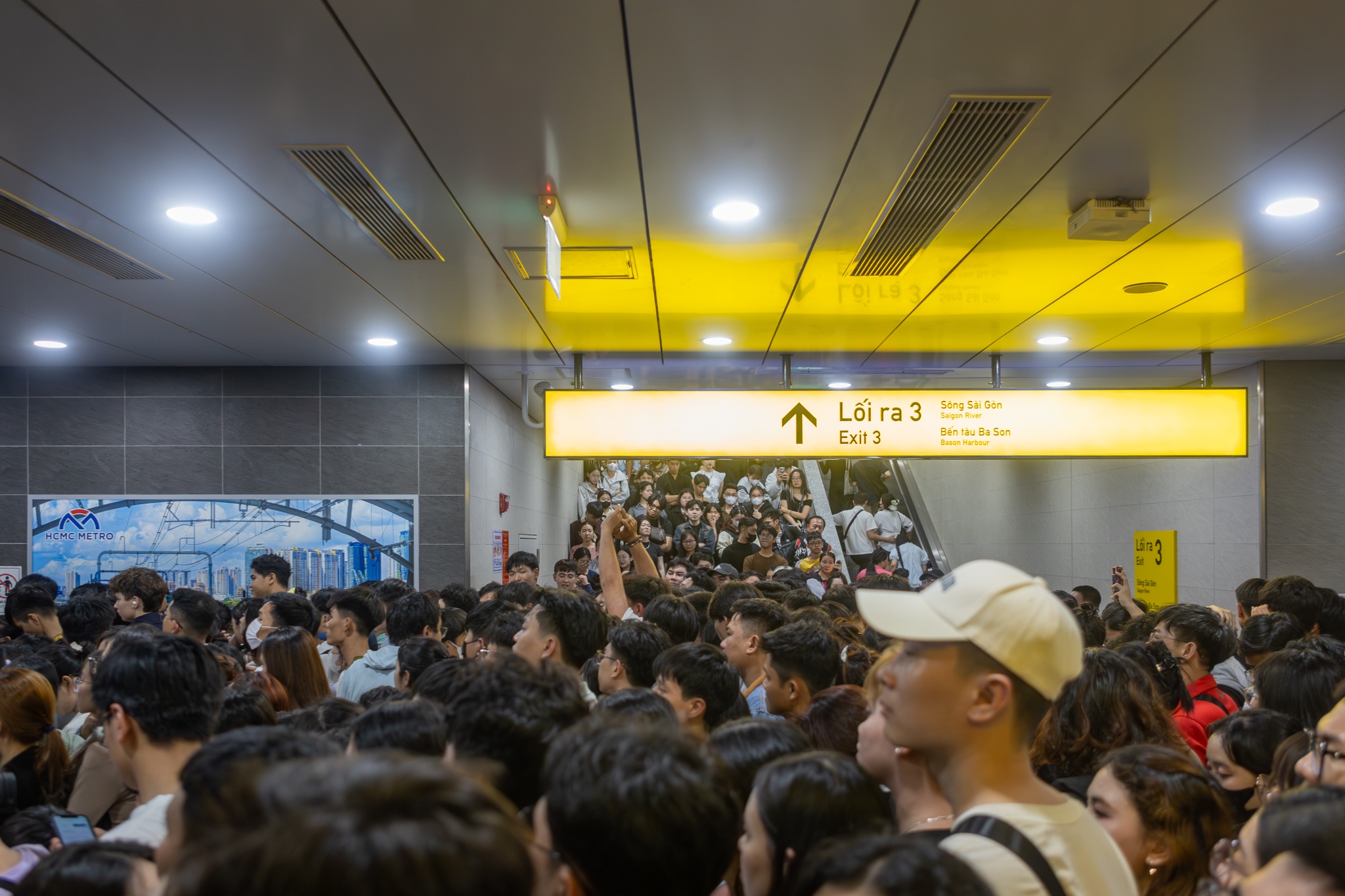Huy Khang (28 tuổi) đi metro về ga Bình Thái, có mặt tại ga Ba Son từ 0h45 nhưng phải chờ đến gần 2h mới lên được tàu. Từ sau 1h30, dòng người chỉ nhích từng chút trong biển người ken đặc, khiến Khang không khỏi lo lắng lỡ chuyến tàu cuối.