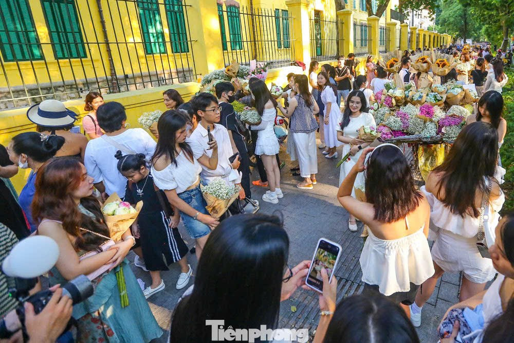 Những gánh hoa tươi như một thứ "đặc sản" trên con đường này thu hút nhiều người.