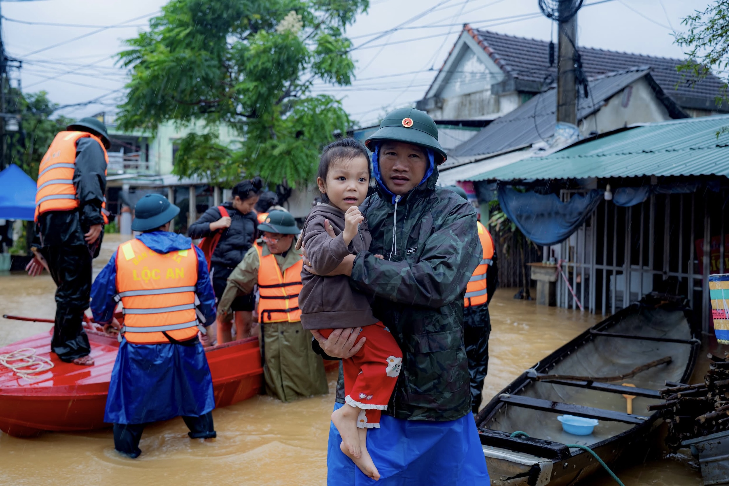 Tình trạng ngập nặng cũng diễn ra tại xã Lộc An, phường An Cựu, phường Thuận Hóa... UBND các phường, xã hỗ trợ sơ tán, di dời đồ đạc, đồng thời nghiêm cấm người và phương tiện di chuyển trên sông, hồ. Theo dự báo của cơ quan Khí tượng thủy văn TP Huế, địa phương tiếp tục có mưa to đến rất to tới ngày 29/10. Ảnh: Lê Đình Hoàng.