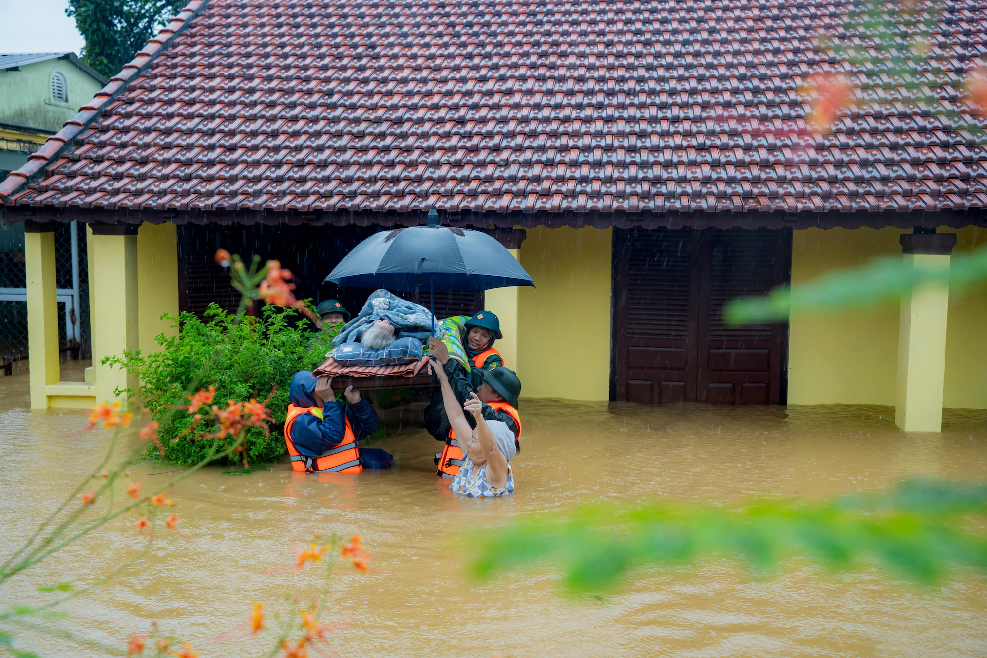 Khu vực Bắc và Nam Trung Bộ đang trải qua chuỗi ngày ngập lụt do mưa lớn kéo dài. Tại Huế, tình hình lũ lụt vẫn diễn biến phức tạp vào sáng 28/10. Nước sông Bồ và sông Hương đang ở mức cao. Toàn thành phố chìm trong biển nước gây khó khăn cho người dân, thậm chí một số khu vực vùng trũng ngập sâu, nhiều hộ gia đình bị cô lập. Ảnh: Nhật Hoàng.