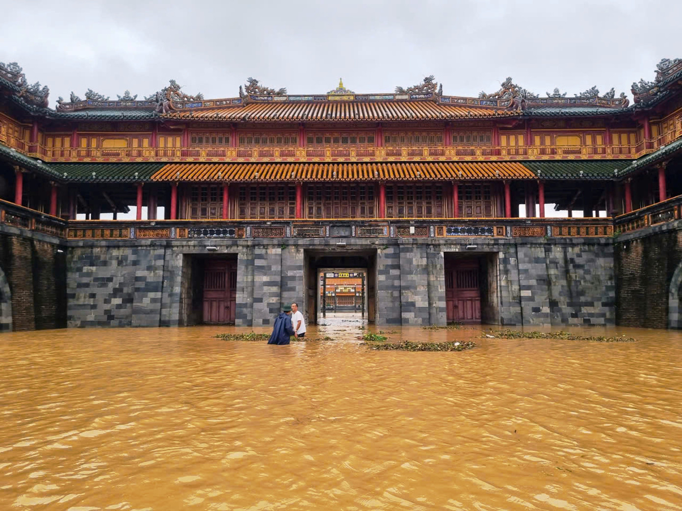 Nước lũ tràn qua cổng Ngọ Môn - Đại Nội Huế. TTBTDT Huế