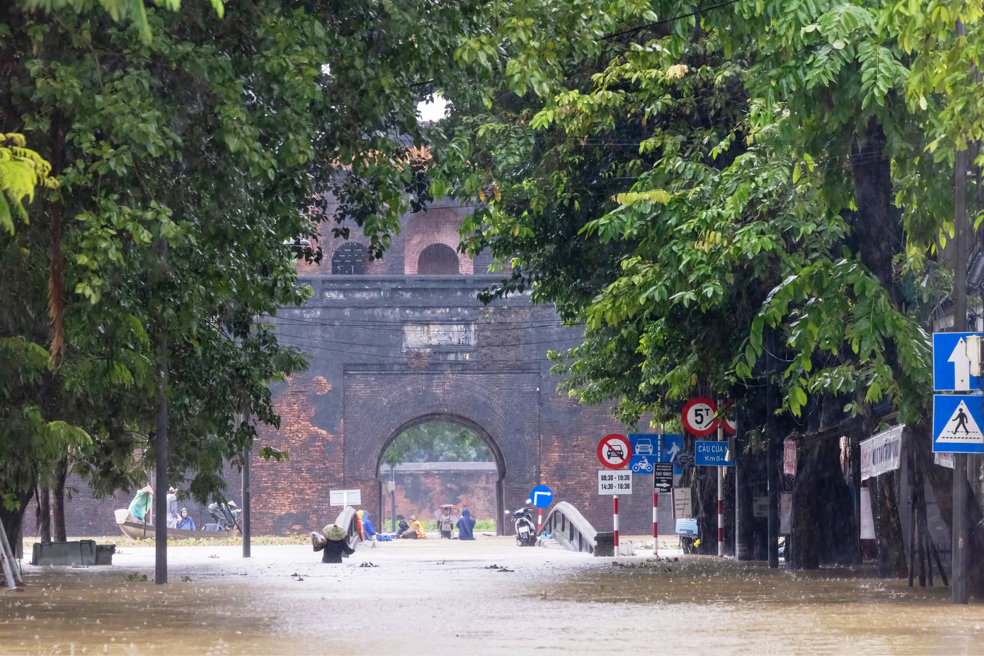 Lối vào Cửa Ngăn - một cổng chính của mặt nam Kinh thành Huế ngập sâu trong nước lũ. TTBTDT Huế