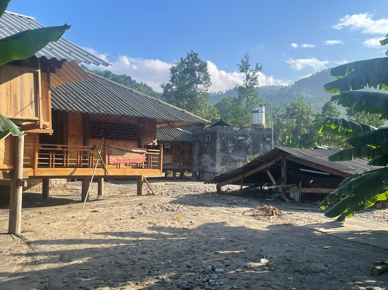 Tại xã Văn Bàn, thôn Ít Nộc và Làng Chút - hai thôn đặc biệt khó khăn - là nơi chịu thiệt hại nặng nề nhất. Dù chỉ cách Quốc lộ 279 khoảng 9 km, nhưng đường vào đã bị sạt lở nghiêm trọng, nhiều đoạn bùn đất vùi lấp sâu tới 3 mét. Toàn xã có 106 ngôi nhà bị ảnh hưởng, trong đó 11 nhà hư hỏng trên 70%, 70 nhà hư hỏng từ 50-70%. Chính quyền đã di dời khẩn cấp 126 hộ dân; riêng 51 hộ thôn Ít Nộc phải ở tạm tại điểm trường và nhà văn hóa thôn.