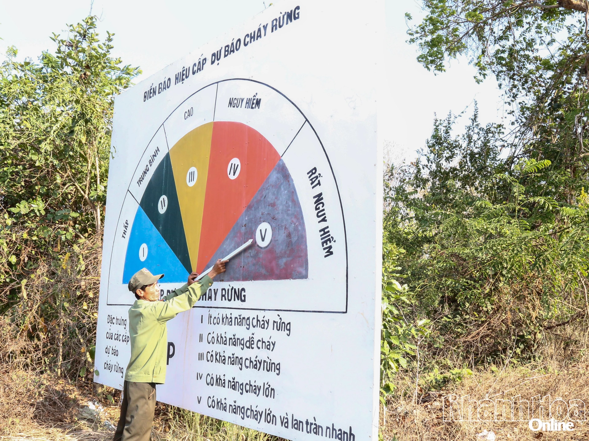 Trong những ngày nắng nóng, hanh khô kéo dài, nhiều khu vực rừng căm xe ở xã Tây Ninh Hòa có mức cảnh báo cháy rừng cấp V.