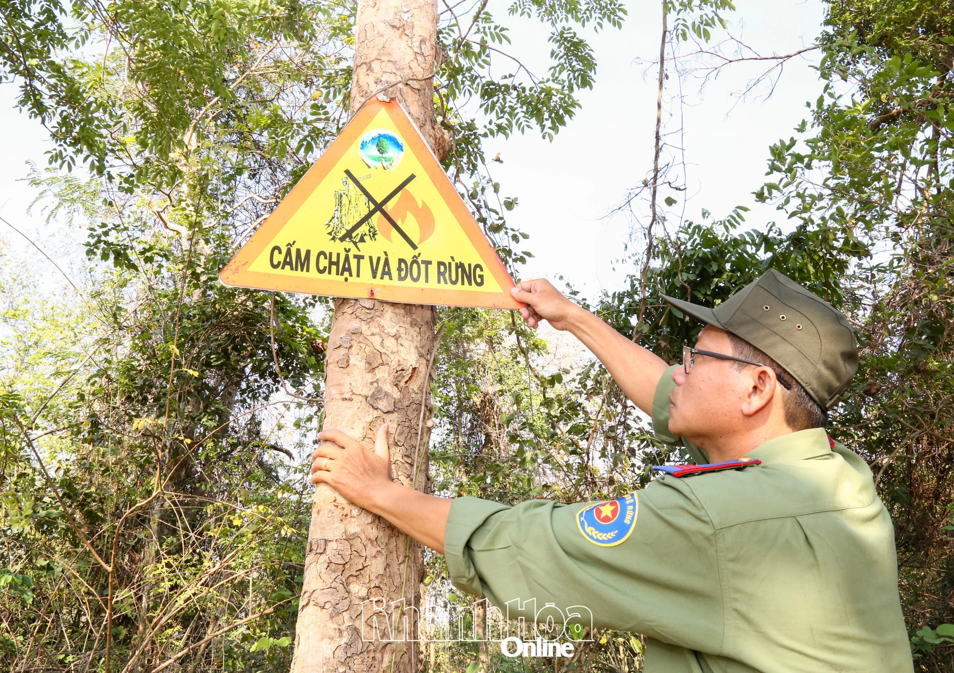 Biển cảnh báo cấm chặt, đốt rừng được đặt khắp rừng căm xe.
