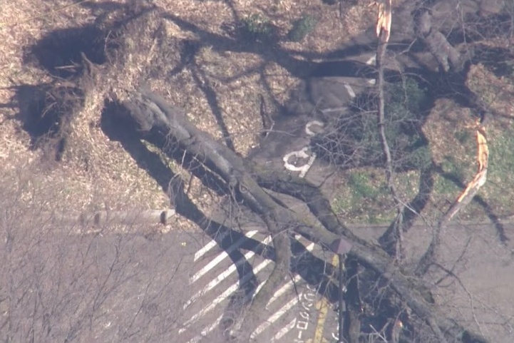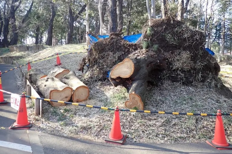Theo ông Akira Kobayashi, giám đốc Hiệp hội Bác sĩ Cây xanh Nhật Bản, nguy cơ này chủ yếu đến từ tình trạng già hóa đồng loạt của cây xanh đô thị. Báo cáo liên quan đến vụ cây đổ ở công viên Kinuta cho thấy rễ cây đã bị nấm làm thối, trong khi mưa lớn đầu tháng 3 khiến đất mềm hơn, làm cây bật gốc. Dù các cuộc kiểm tra định kỳ vẫn được thực hiện, việc dự báo cây đổ trong nhiều trường hợp vẫn rất khó. Ảnh: FNN.