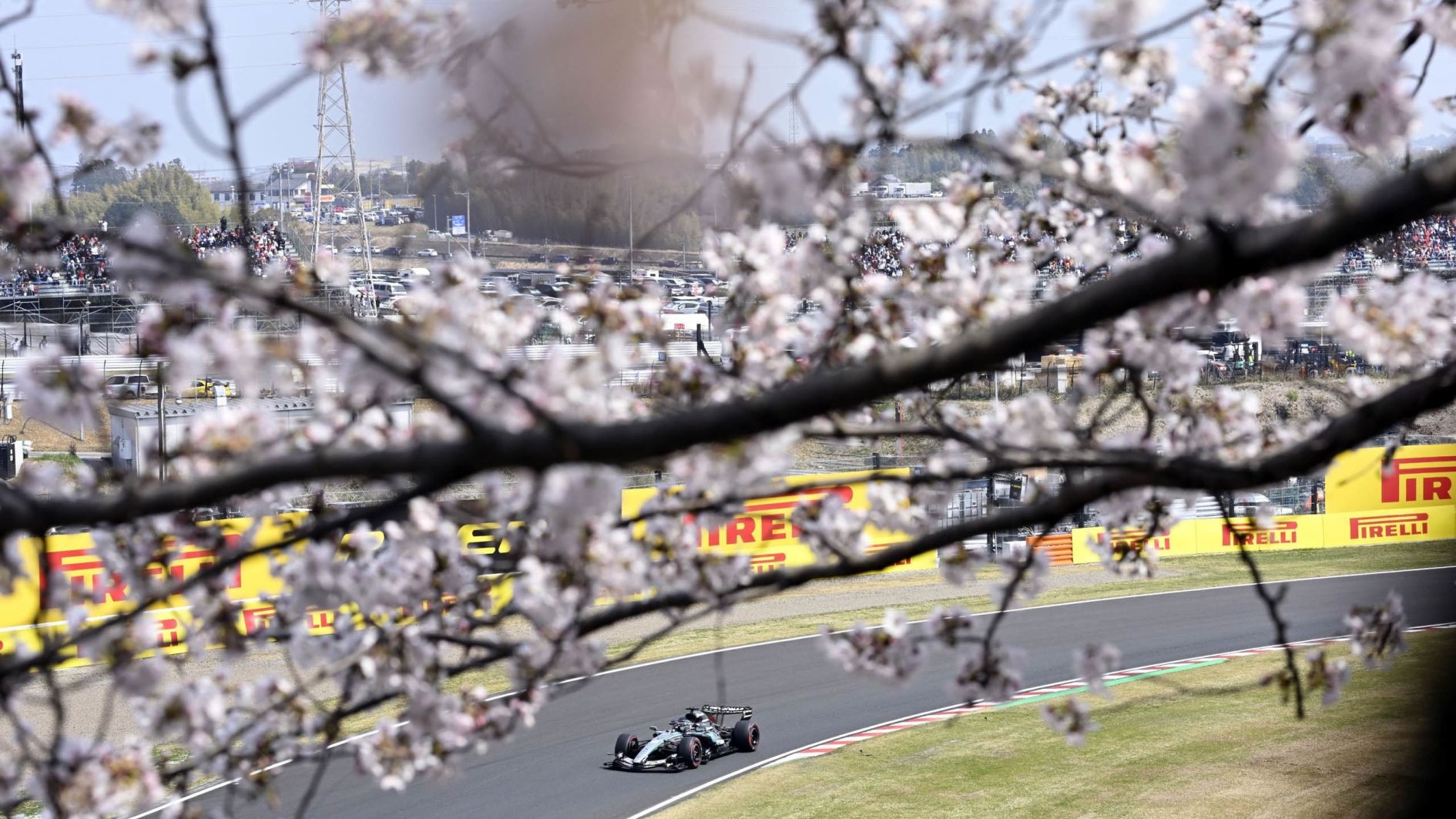 Hoa anh đào nở rộ tại đường đua Suzuka ở thành phố Suzuka, tỉnh Mie, trong buổi chạy thử trước thềm chặng đua F1 Nhật Bản hôm 28/3. Ảnh: Kyodo.