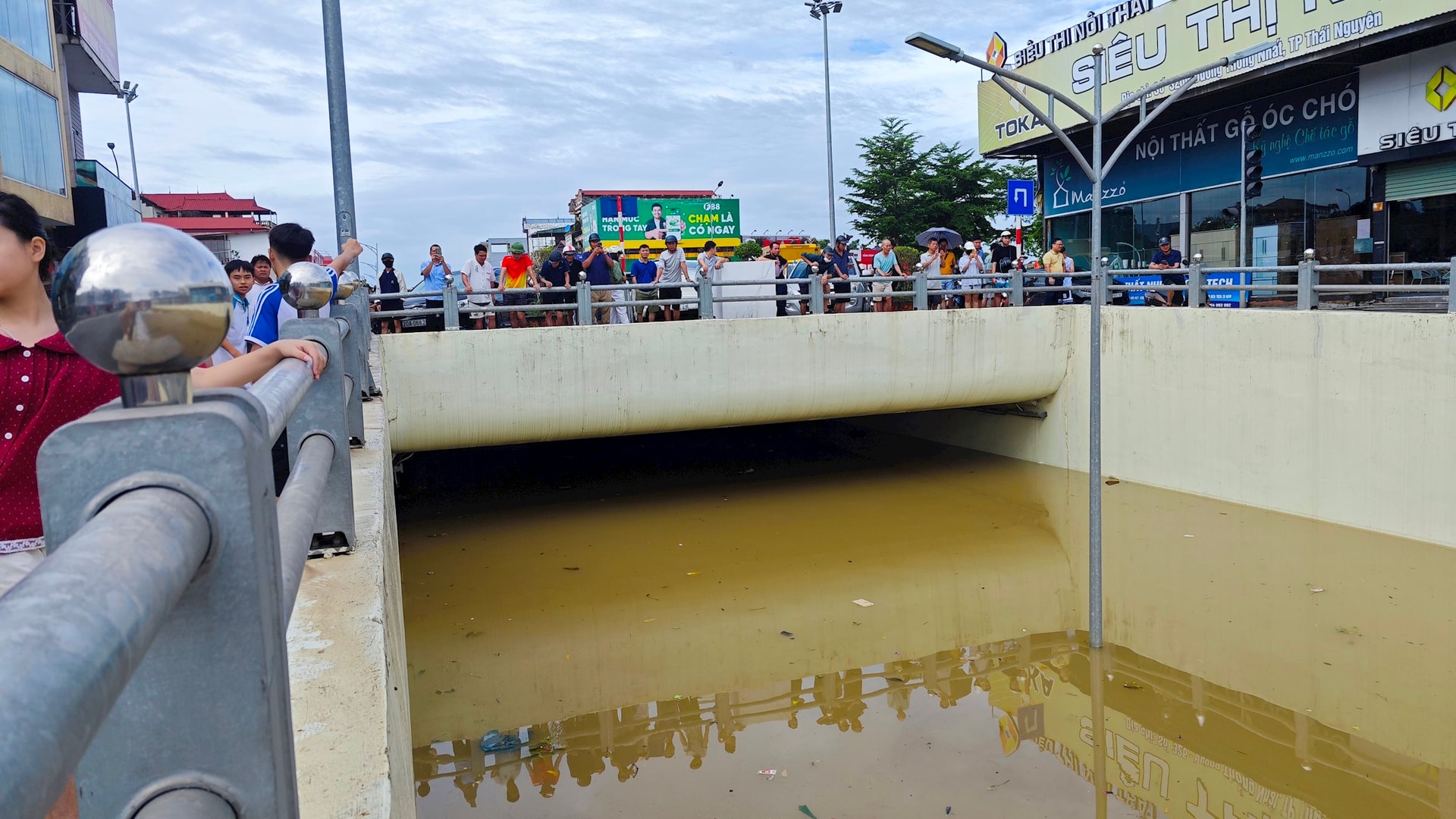 Hầm chui Việt Bắc bị ngập hoàn toàn trong nước lũ.