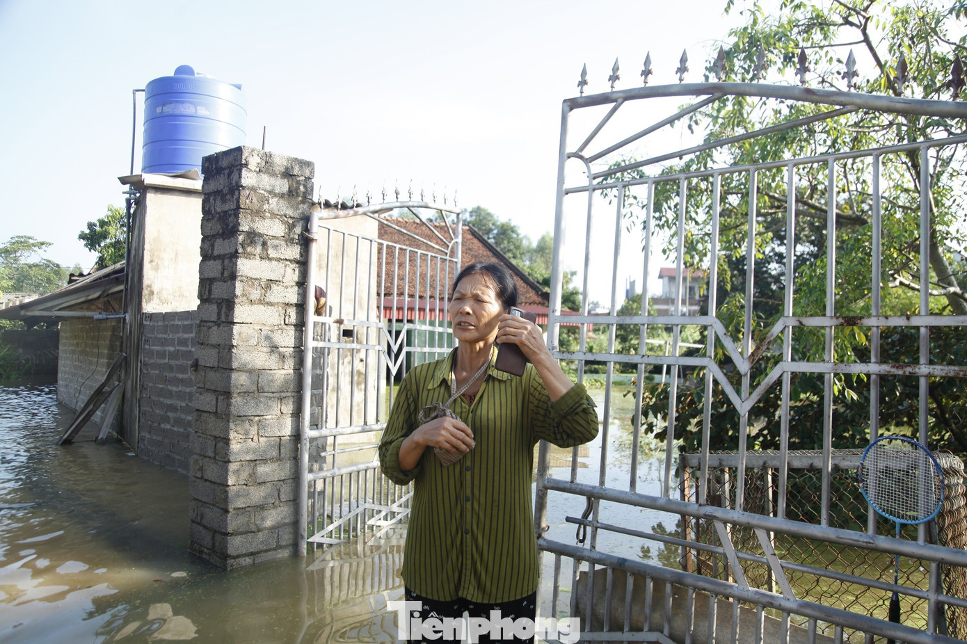 Bà Vũ Thị Lộc (63 tuổi) ở thôn Bến Phà, xã Tiên Lục chia sẻ, đây là trận lụt lịch sử trong cuộc đời. Lần đầu tiên, bà thấy thôn bị ngập lụt sâu như hiện nay. Nước lũ ngập đến nửa nhà bà. Gia đình bà đã di chuyển người và đồ vật đến nơi an toàn. Ảnh: Nguyễn Thắng