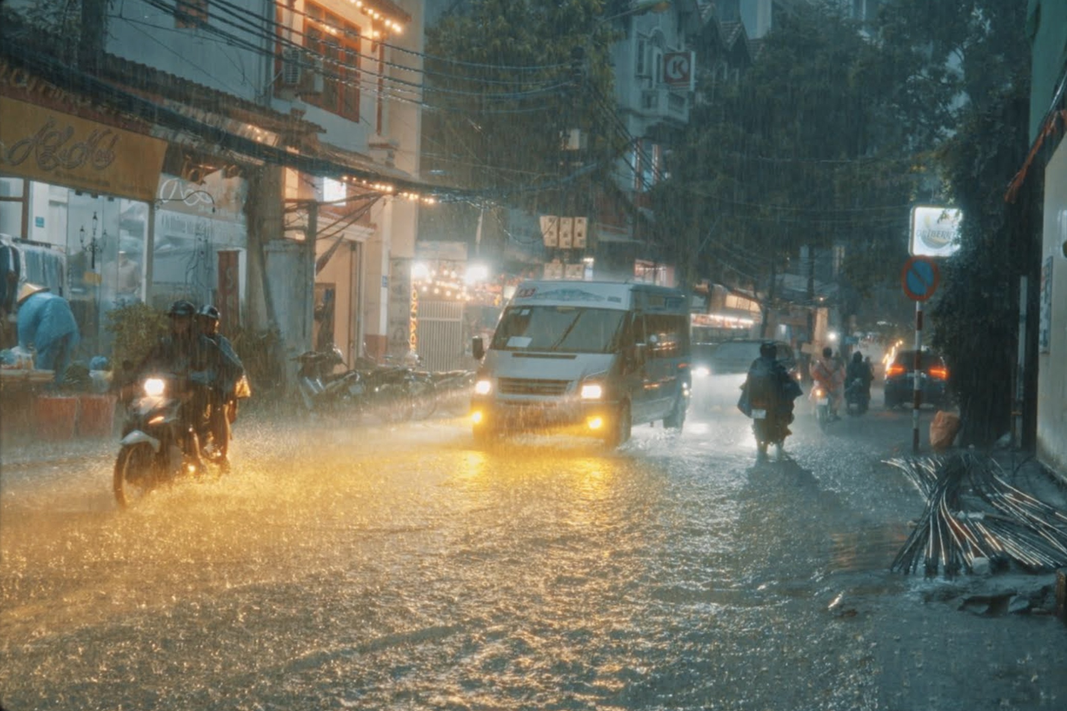 Anh miêu tả ngày Hà Nội chịu ảnh hưởng bởi cơn bão số 10 (Bualoi) như một khung cảnh vừa kỳ lạ vừa quen thuộc. Các con phố chìm trong biển nước, xe máy loay hoay giữa dòng nước ngang gối. Dẫu vậy, cuộc sống vẫn diễn ra theo nhịp điệu rất riêng của Hà Nội.