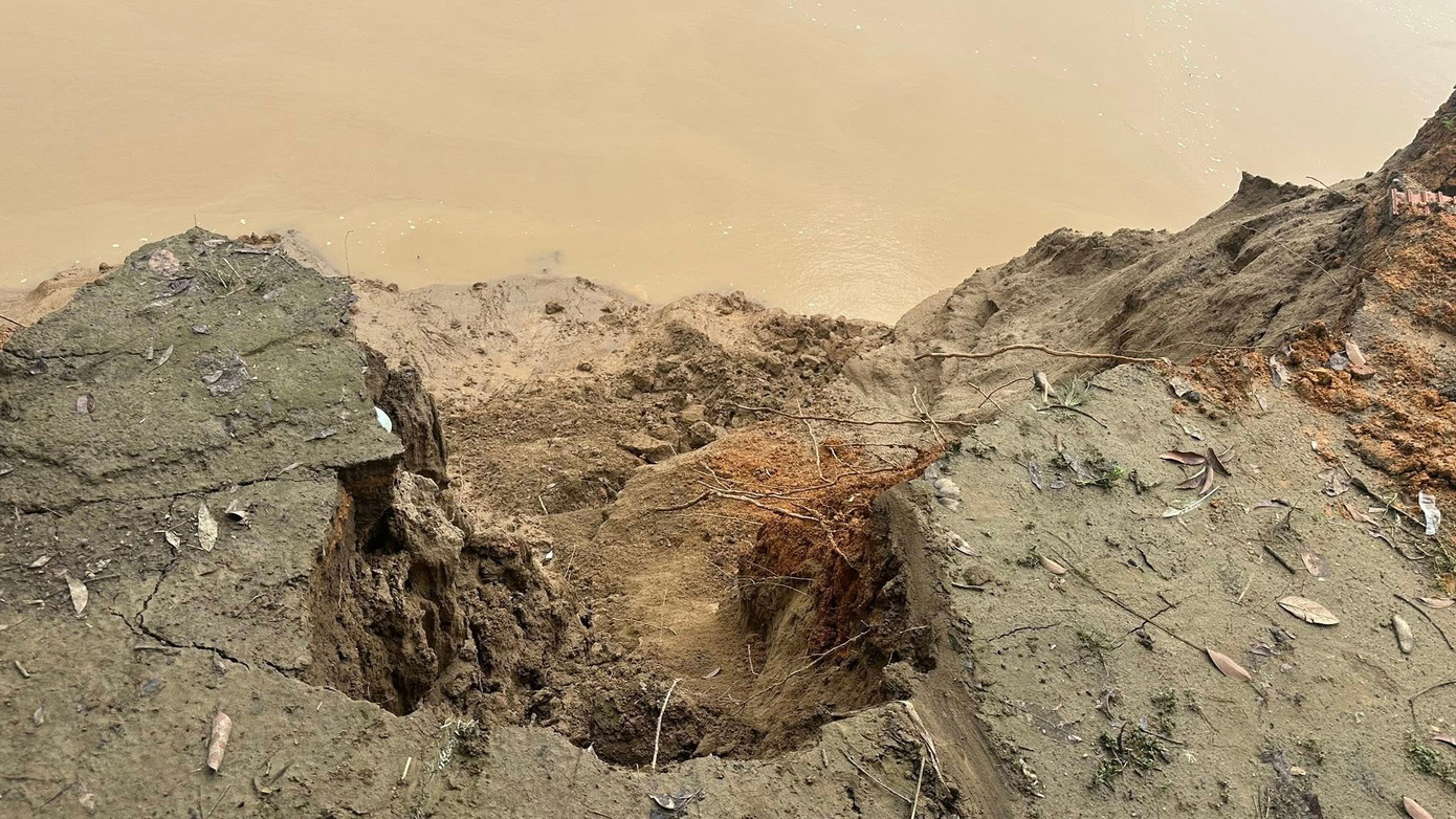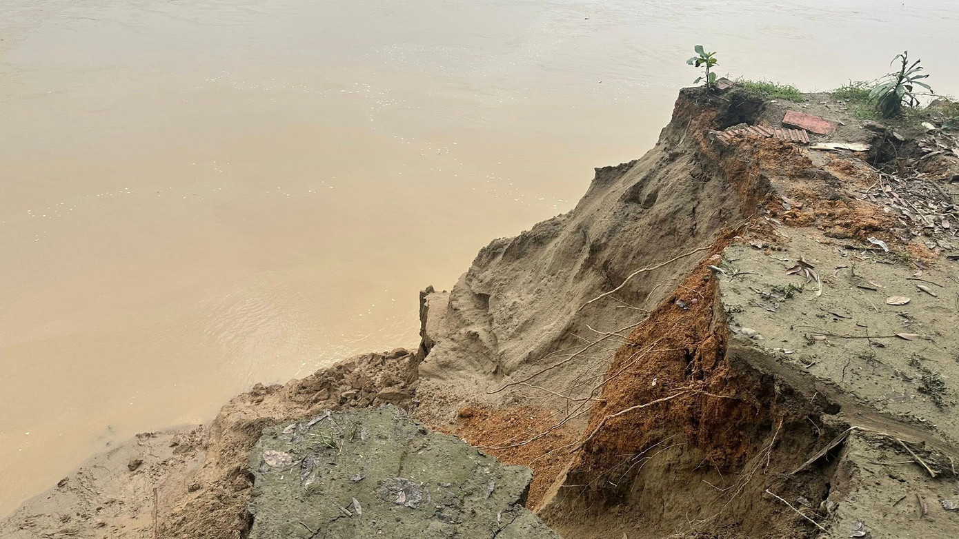 Tại khu 20, xã Dân Chủ, sạt lở bờ sông Lô nghiêm trọng xảy ra, hàng loạt mảng đất bị nước cuốn trôi, để lại những vực sâu hoắm kéo dài hàng trăm mét. Sạt lở đã cuốn trôi đất của người dân. Ông Nguyễn Xuân Sang, một hộ dân bị ảnh hưởng nặng nề chia sẻ, ông sống ở đây hơn 30 năm, nhưng chưa bao giờ thấy sạt lở bờ sông nghiêm trọng như thời điểm này. Chỉ trong nửa ngày, toàn bộ khu vườn dài gần 30m, cùng cây cối, công trình phụ đều bị nước cuốn đi. Giờ sạt lở đã vào sát sân nhà, chỉ còn cách tường vài mét. Hiện nay, nước sông đã xuống, sạt lở giảm, nhưng gia đình ông và hàng xóm vẫn sống trong lo sợ.