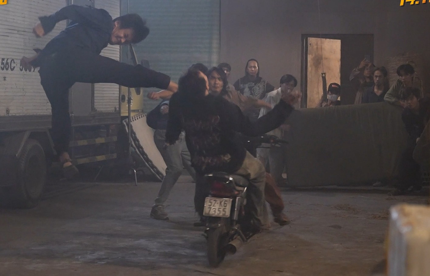 Cảnh hành động của Doãn Quốc Đam, Quang Tuấn trên phim trường.