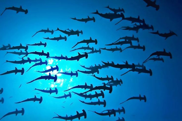 Thiên đường của cá mập và cá đuối. Vùng nước quanh đảo là nơi tụ hội của cá mập đầu búa, cá đuối manta khổng lồ và cá heo. Ảnh: Pinterest.