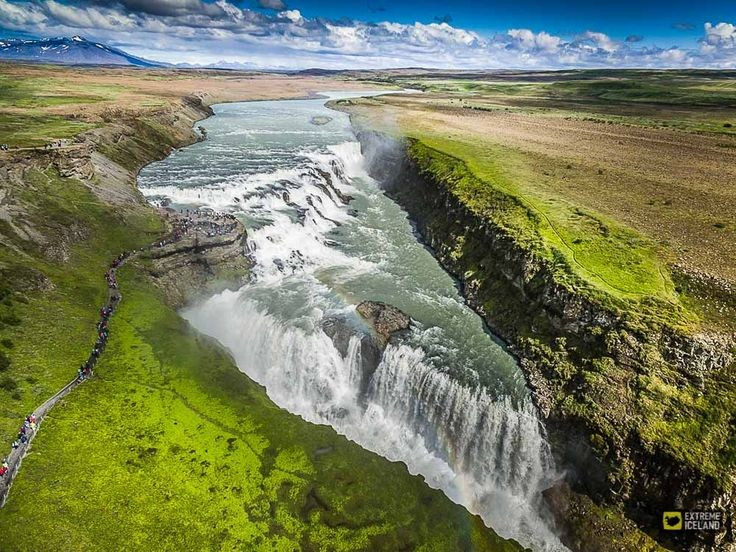Là điểm du lịch nổi tiếng. Gullfoss là một trong ba điểm chính của “Golden Circle” – tuyến du lịch nổi tiếng nhất Iceland, cùng với vườn quốc gia Thingvellir và mạch nước phun Geysir. Ảnh: Pinterest.