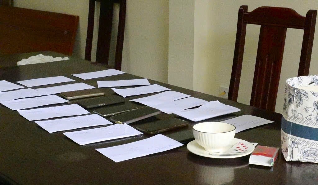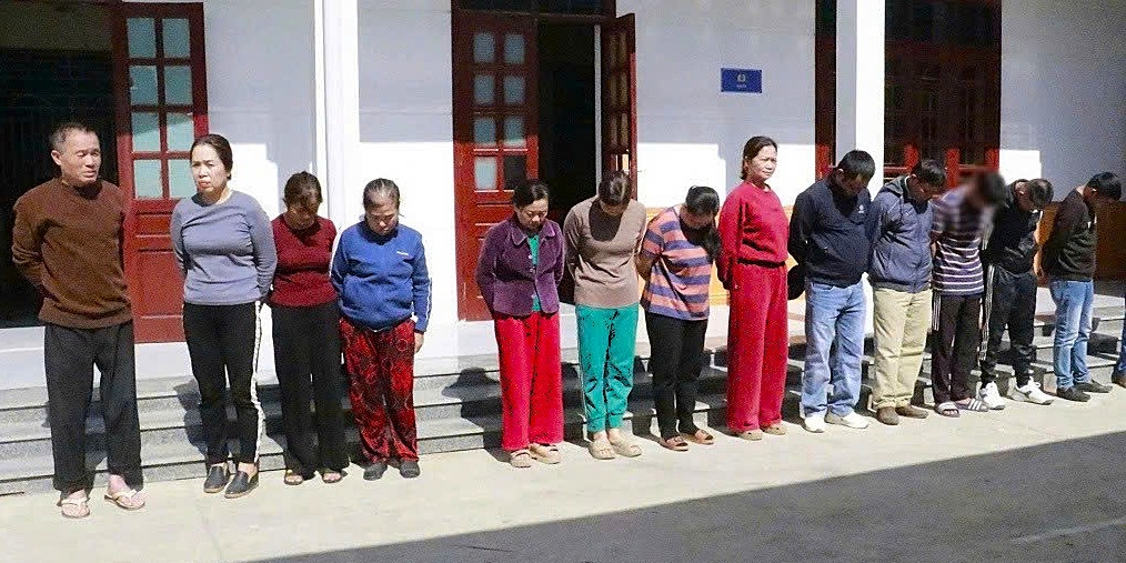 Đến 3/12, phòng cảnh sát hình sự đã bắt 14 đối tượng (cả nam lẫn nữ) liên quan. Trong số bị bắt, nhiều người trú tại xã Quế Phong, xã Thông Thụ (Nghệ An). Tang vật thu giữ hơn 65 triệu đồng tiền mặt, nhiều điện thoại di động và các đồ vật khác có liên quan.