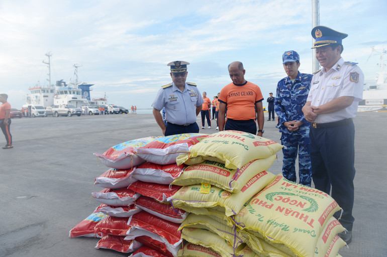 Theo đó, Bộ Quốc phòng chỉ đạo đoàn công tác Cảnh sát biển Việt Nam do Thiếu tướng Trần Quang Tuấn, Tư lệnh Vùng Cảnh sát biển 2 làm trưởng đoàn đi trên tàu CSB 8002 đang có chuyến thăm và giao lưu với Lực lượng Bảo vệ bờ biển Philippines, kịp thời có những hoạt động chung tay hỗ trợ khắc phục thiên tai cùng chính quyền và người dân địa phương.