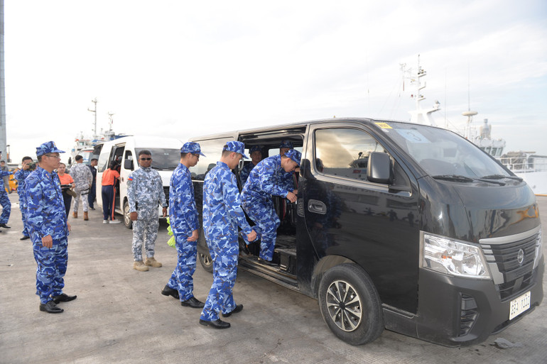 Trong ngày 8/10, cán bộ, chiến sĩ đoàn công tác Cảnh sát biển Việt Nam đã phối hợp cán bộ, nhân viên Lực lượng Bảo vệ bờ biển Philippines hành quân hơn 100km từ vị trí tàu CSB 8002 neo đậu đến tỉnh Bogo - nơi người dân địa phương đang chịu hậu quả nặng từ động đất để thực hiện các hoạt động hỗ trợ.
