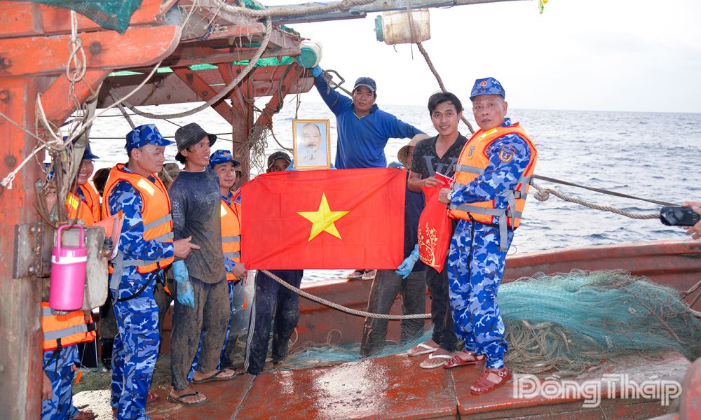 Thay mặt thủ trưởng Bộ Tư lệnh Cảnh sát biển Việt Nam và Đoàn công tác, Trung tướng Bùi Quốc Oai gửi lời chia buồn đến gia đình Trung tá chuyên nghiệp Trần Hưng Thịnh (tàu BV 98393TS) có bố vừa mất không về được.