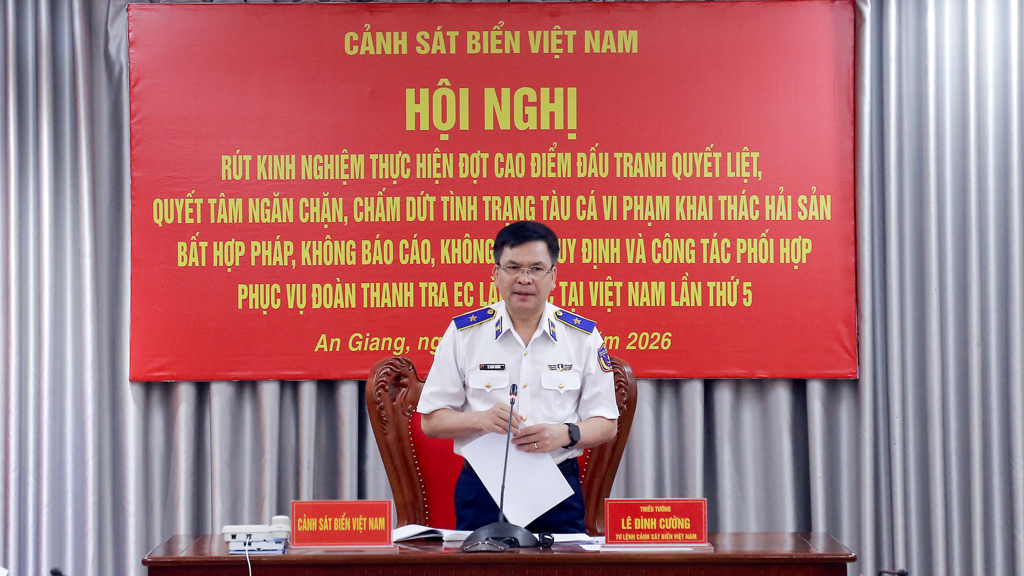Ngày 9-4, tại đặc khu Phú Quốc (tỉnh An Giang), Cảnh sát biển Việt Nam tổ chức Hội nghị rút kinh nghiệm thực hiện đợt cao điểm đấu tranh quyết liệt, quyết tâm ngăn chặn, chấm dứt tình trạng tàu cá vi phạm khai thác hải sản bất hợp pháp, không báo cáo, không theo quy định.