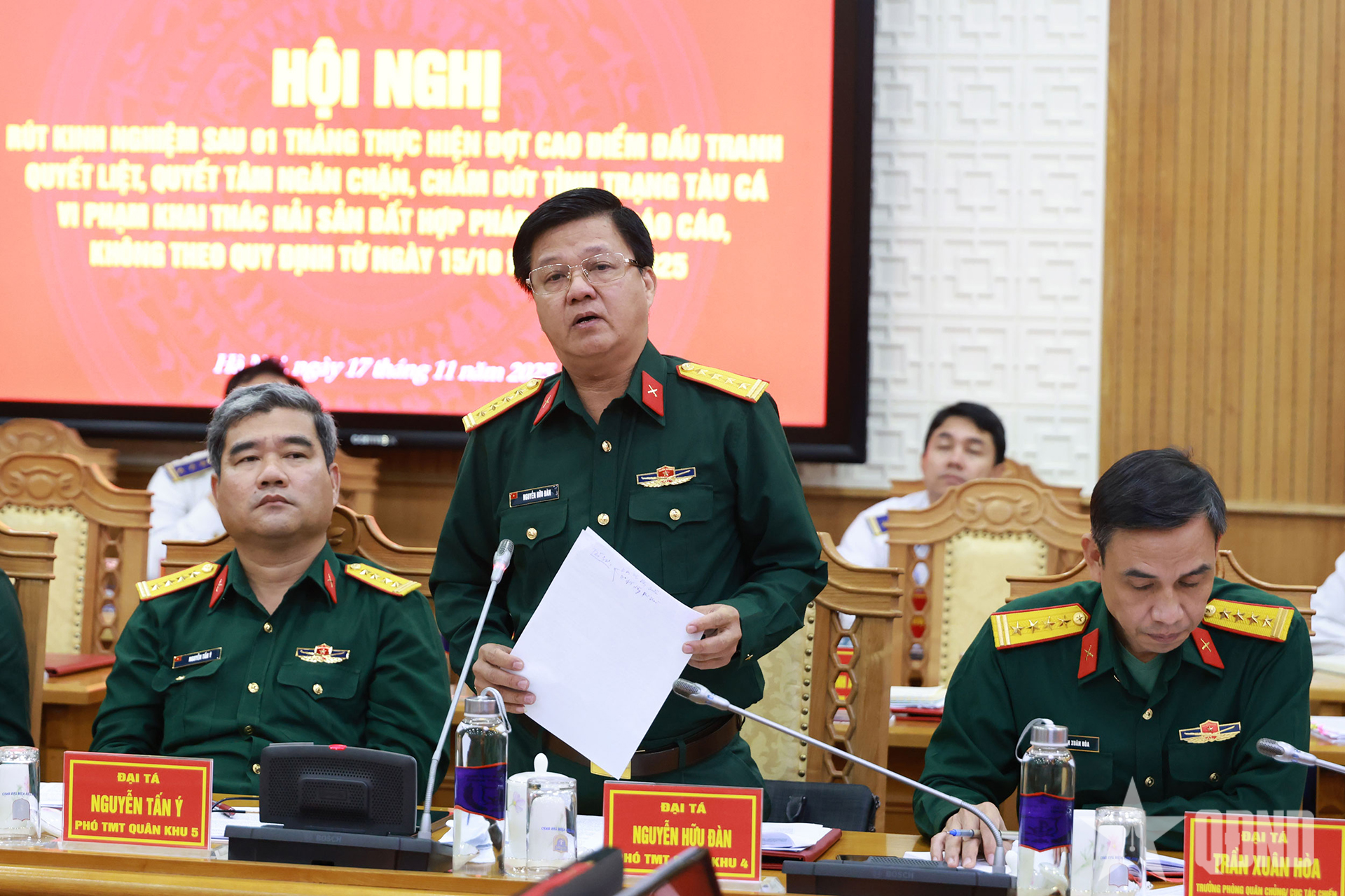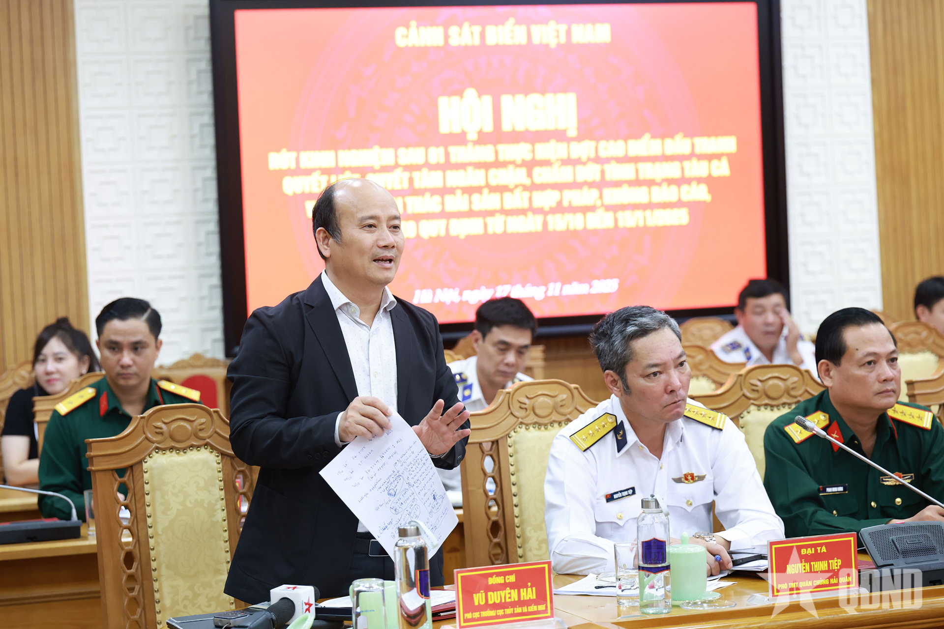 Phát biểu chỉ đạo tại hội nghị, Trung tướng Lê Quang Đạo biểu dương những kết quả mà cán bộ, chiến sĩ lực lượng Cảnh sát biển đã đạt được trong nhiệm vụ chống khai thác IUU, đặc biệt là trong tháng cao điểm vừa qua. Để tiếp tục triển khai đợt cao điểm hiệu quả, đồng chí Phó tổng Tham mưu trưởng yêu cầu Cảnh sát biển Việt Nam cần phối hợp chặt chẽ với các địa phương ven biển, triển khai đồng bộ, quyết liệt các giải pháp chống khai thác IUU theo chỉ đạo của Chính phủ, Thủ tướng Chính phủ, Thủ trưởng Bộ Quốc phòng, Thủ trưởng Bộ Tổng tham mưu, Ban Chỉ đạo quốc gia, Ban Chỉ đạo Bộ Quốc phòng về IUU. Từ đó có biện pháp hiệp đồng chặt chẽ, đẩy mạnh các giải pháp từ công tác vận động, tuyên truyền, tuần tra kiểm soát, thực thi pháp luật, xử lý nghiêm các vi phạm.