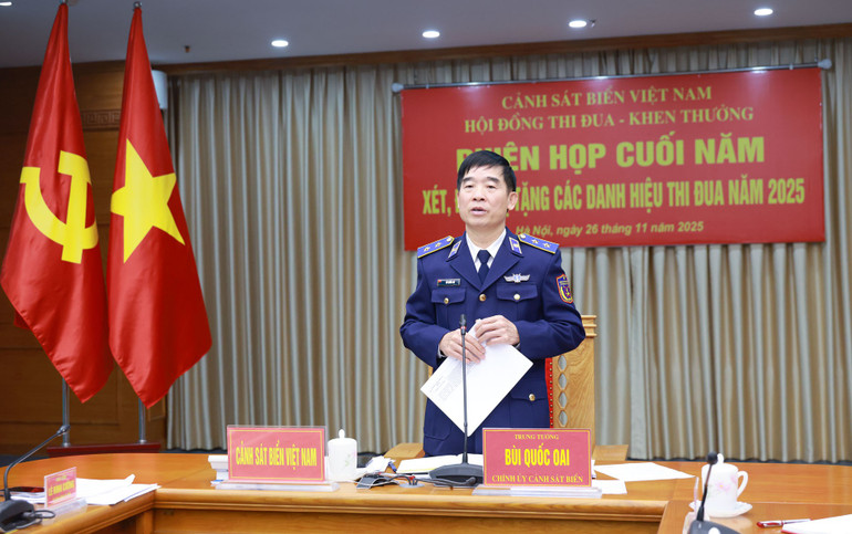 Phát biểu kết luận phiên họp, Trung tướng Bùi Quốc Oai ghi nhận và đánh giá cao công tác lãnh đạo, chỉ đạo của Hội đồng Thi đua-Khen thưởng Cảnh sát biển năm 2025. Công tác thi đua, khen thưởng và phong trào thi đua Quyết thắng của Cảnh sát biển Việt Nam năm 2025 đã được triển khai toàn diện, tạo động lực thúc đẩy nâng cao nhận thức, trách nhiệm trong thực hiện nhiệm vụ.