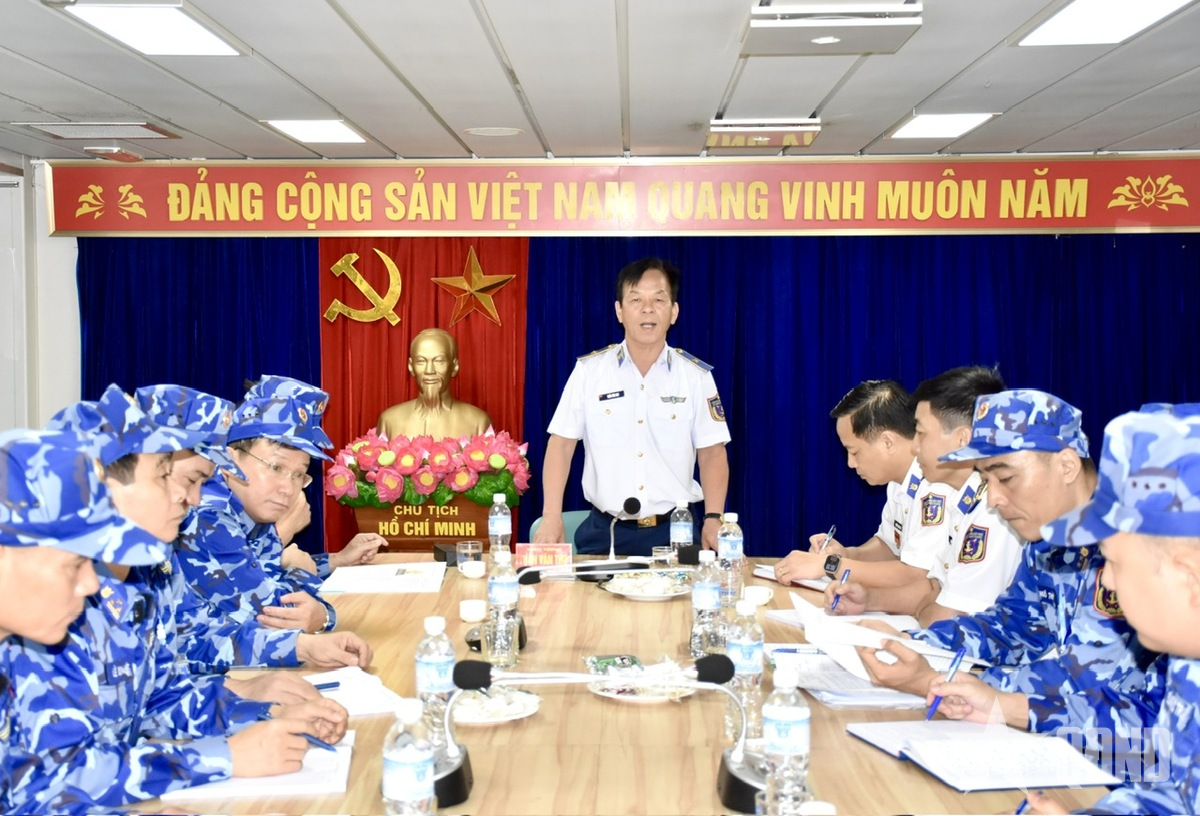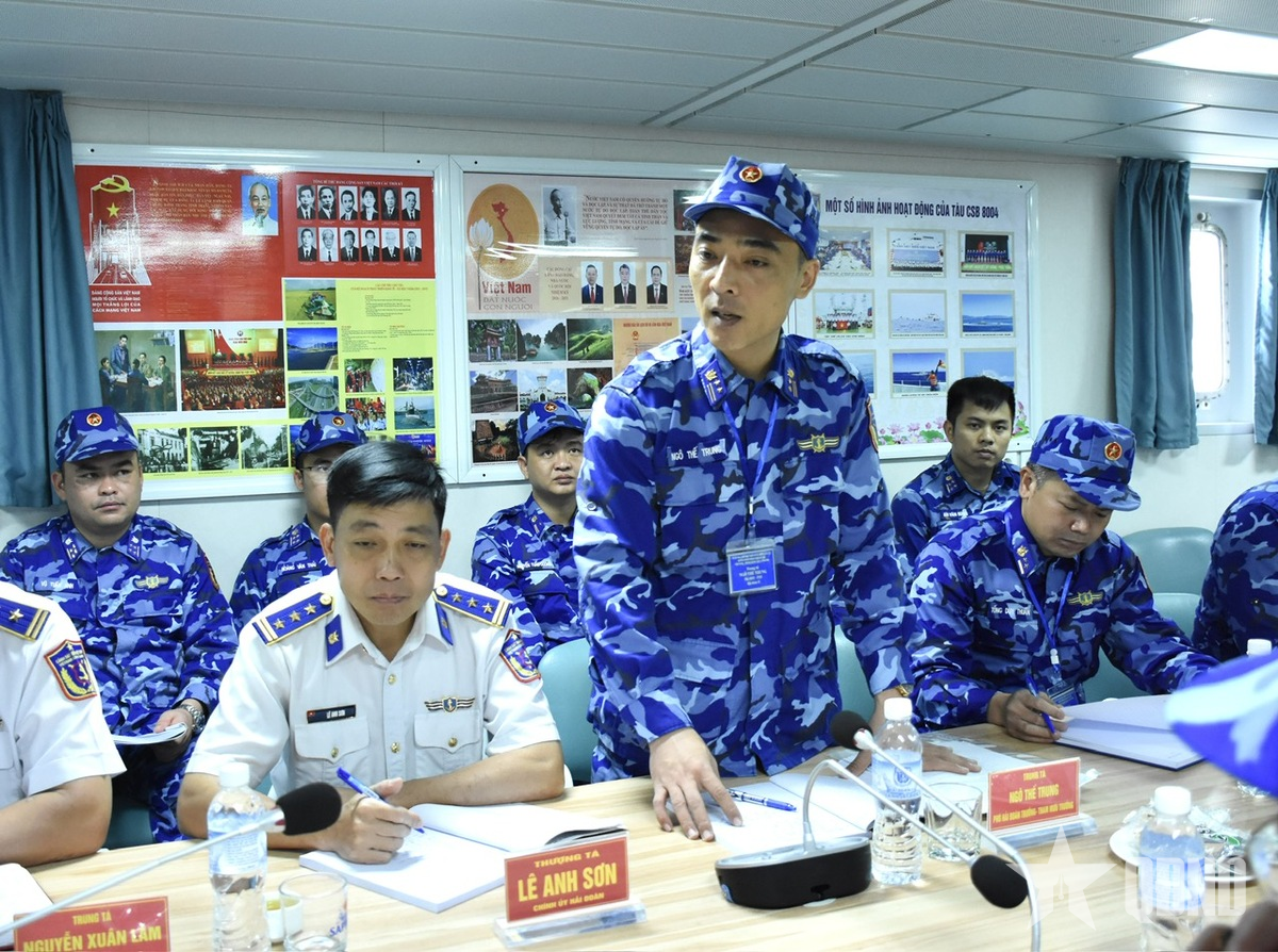 Trung tá Ngô Thế Trung, Phó hải đoàn trưởng, Tham mưu trưởng Hải đoàn 11, Bộ tư lệnh Vùng Cảnh sát biển 1 báo cáo về tình hình chuẩn bị cho chuyến tuần tra liên hợp.