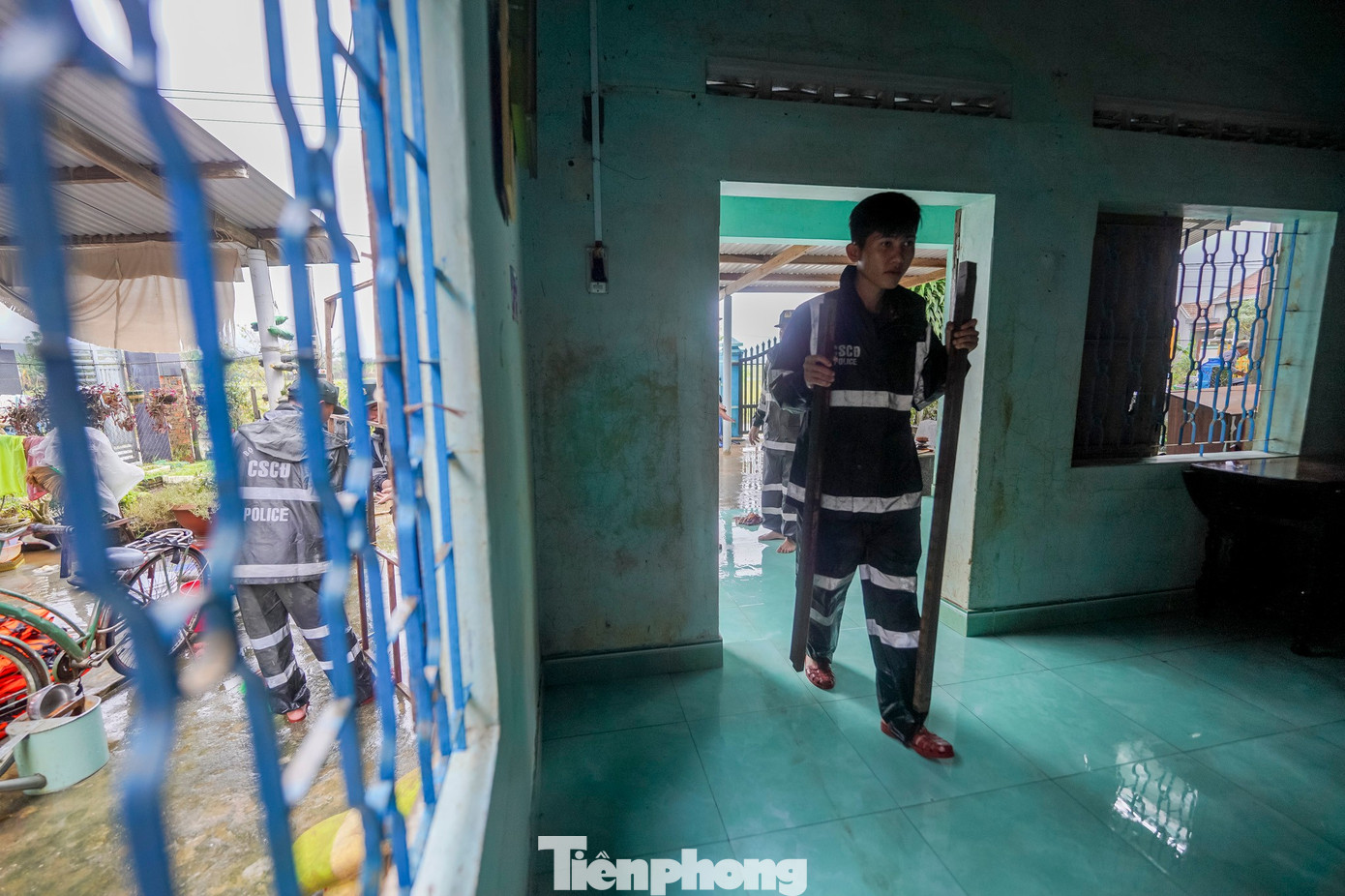 Tại nhà cụ Lê Thị Ngọc, 70 tuổi, một người neo đơn, lực lượng cơ động đã thực hiện dọn dẹp bùn đất, rửa sạch vật dụng và phơi phóng đồ đạc giúp cụ.