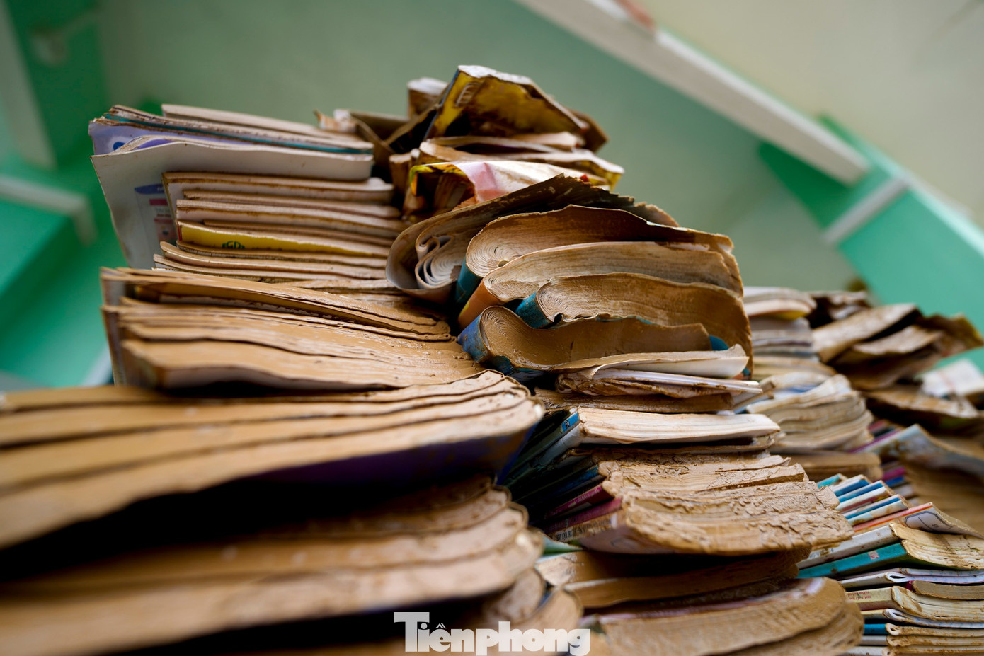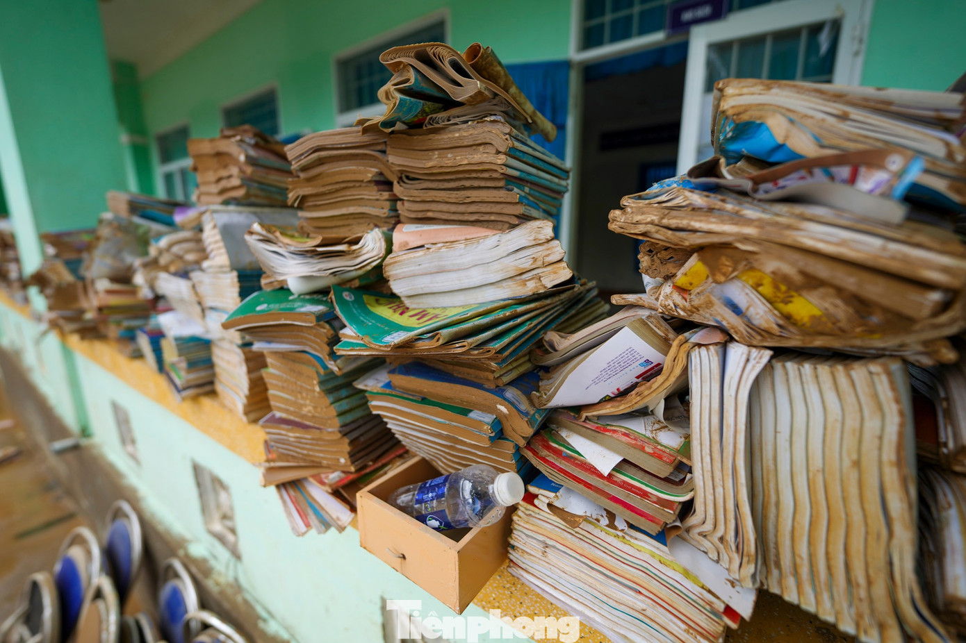 Toàn bộ sách vở, trang thiết bị học tập tại điểm trường tiểu học Hòa Thịnh đều chìm trong bùn đất, không thể sử dụng được.