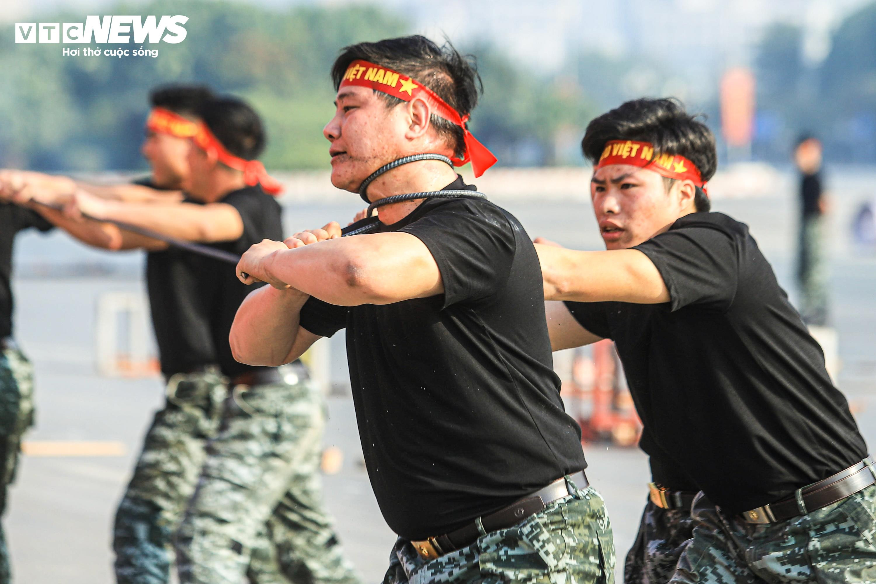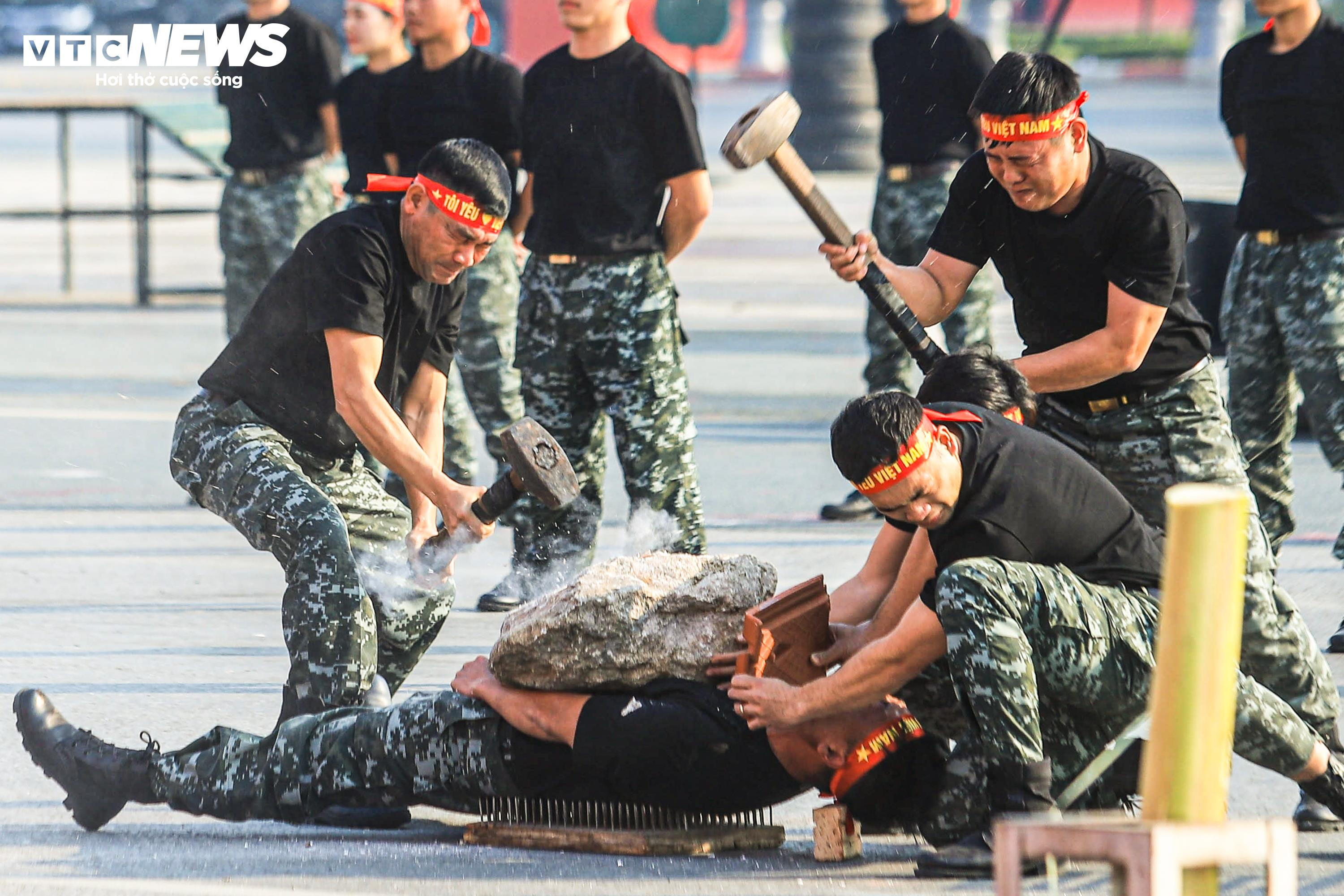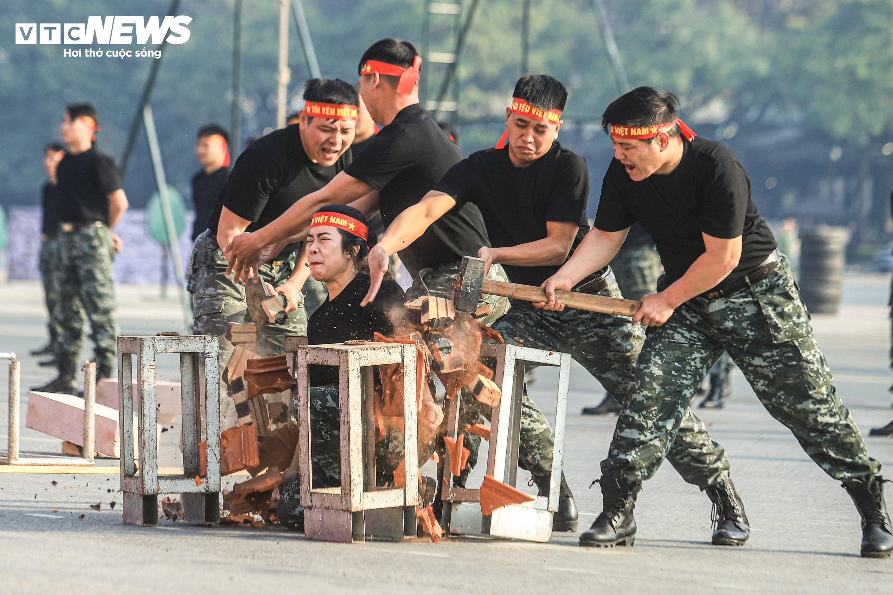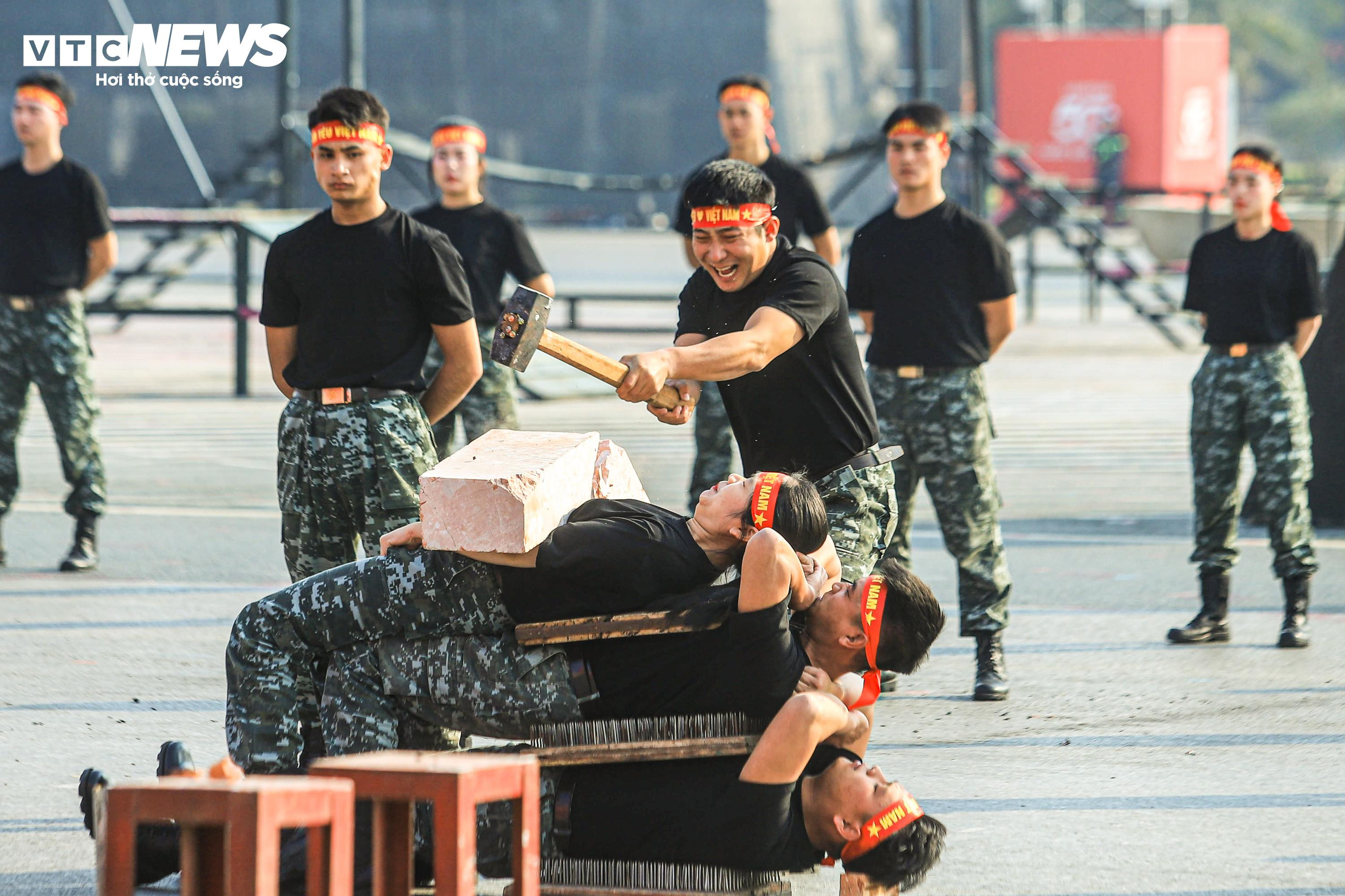 Điểm nhấn của buổi diễn tập là phần trình diễn nội công, công phá của cán bộ, chiến sĩ Đoàn Cảnh sát đặc nhiệm số 1, Bộ Tư lệnh Cảnh sát cơ động.