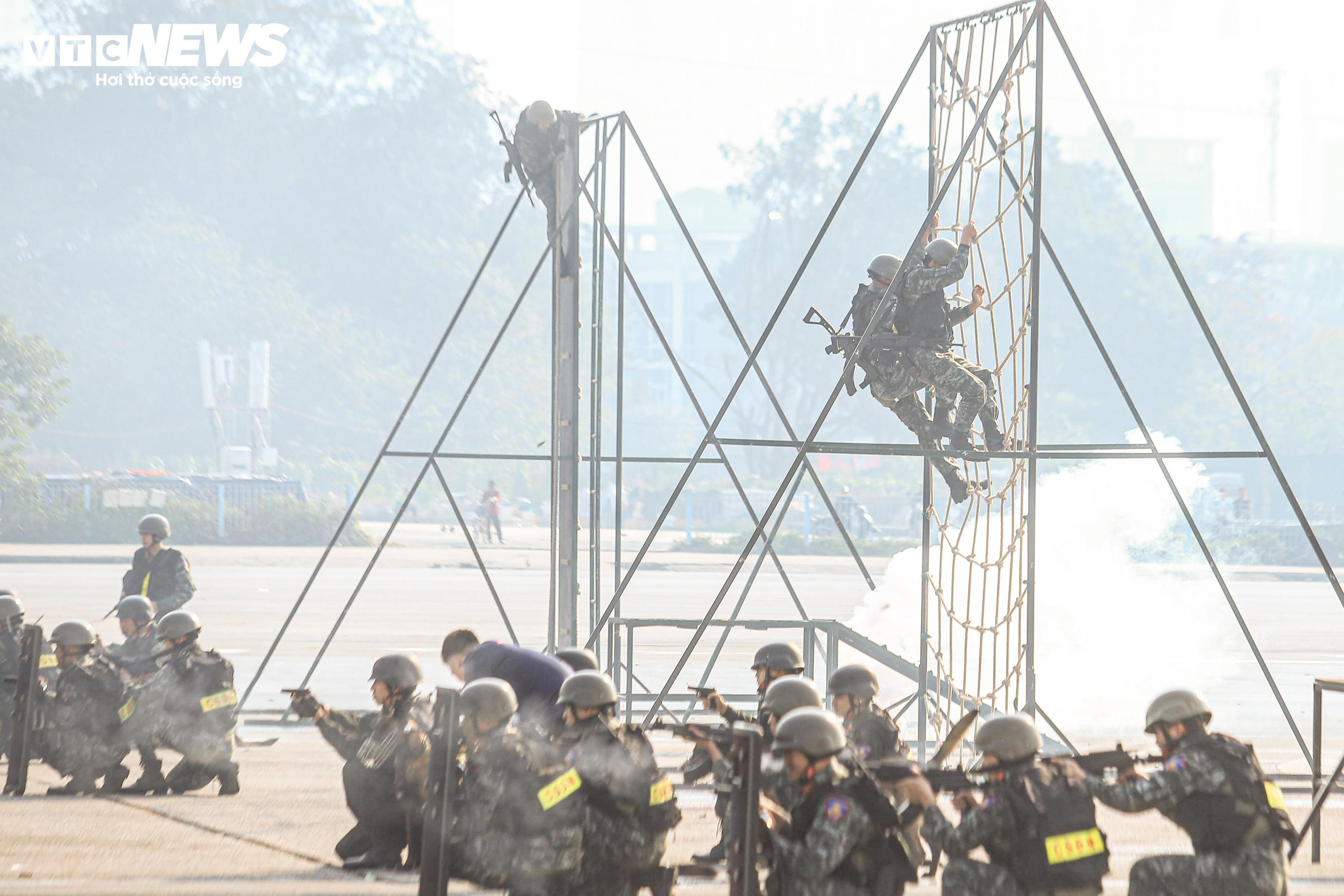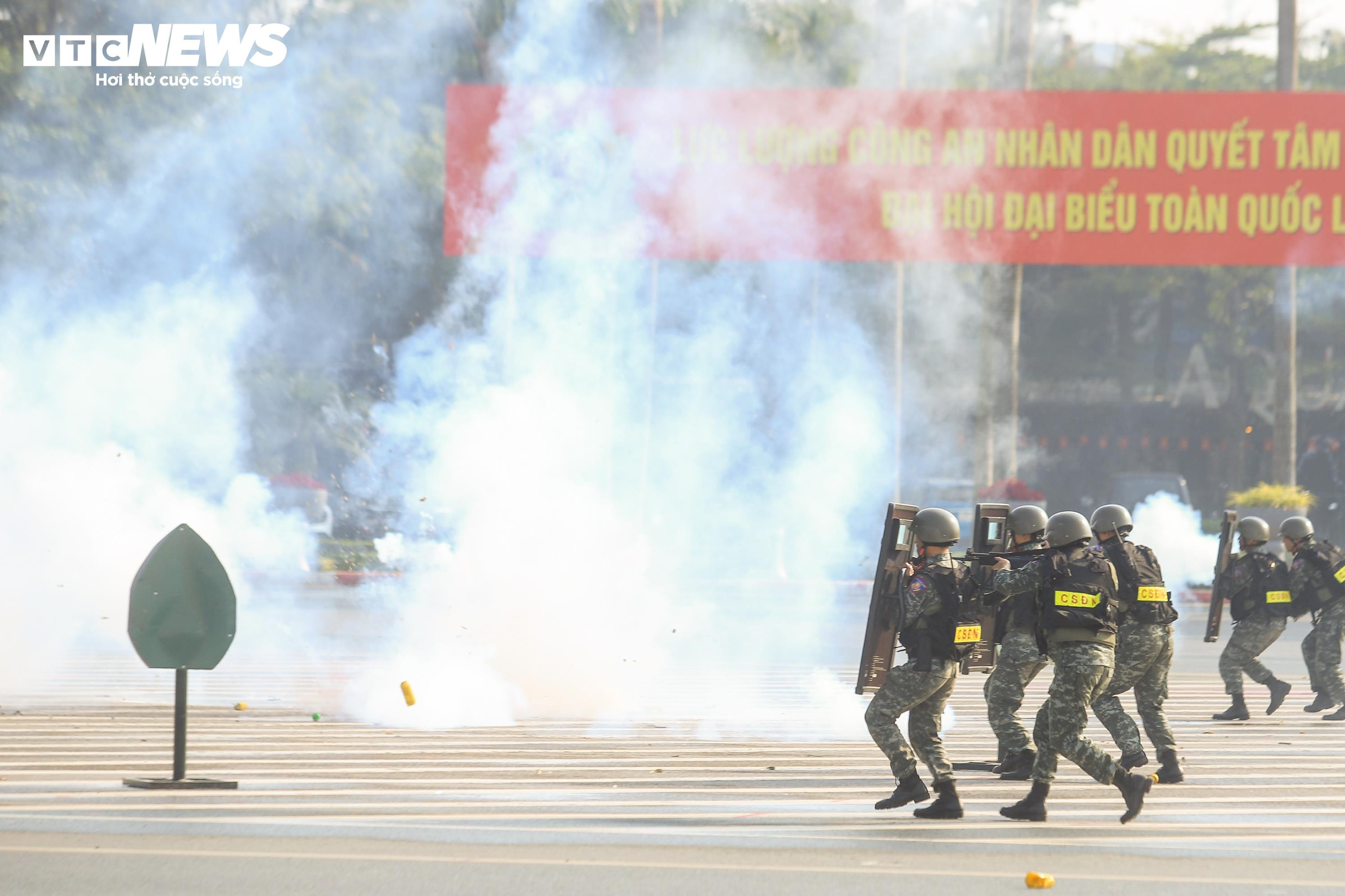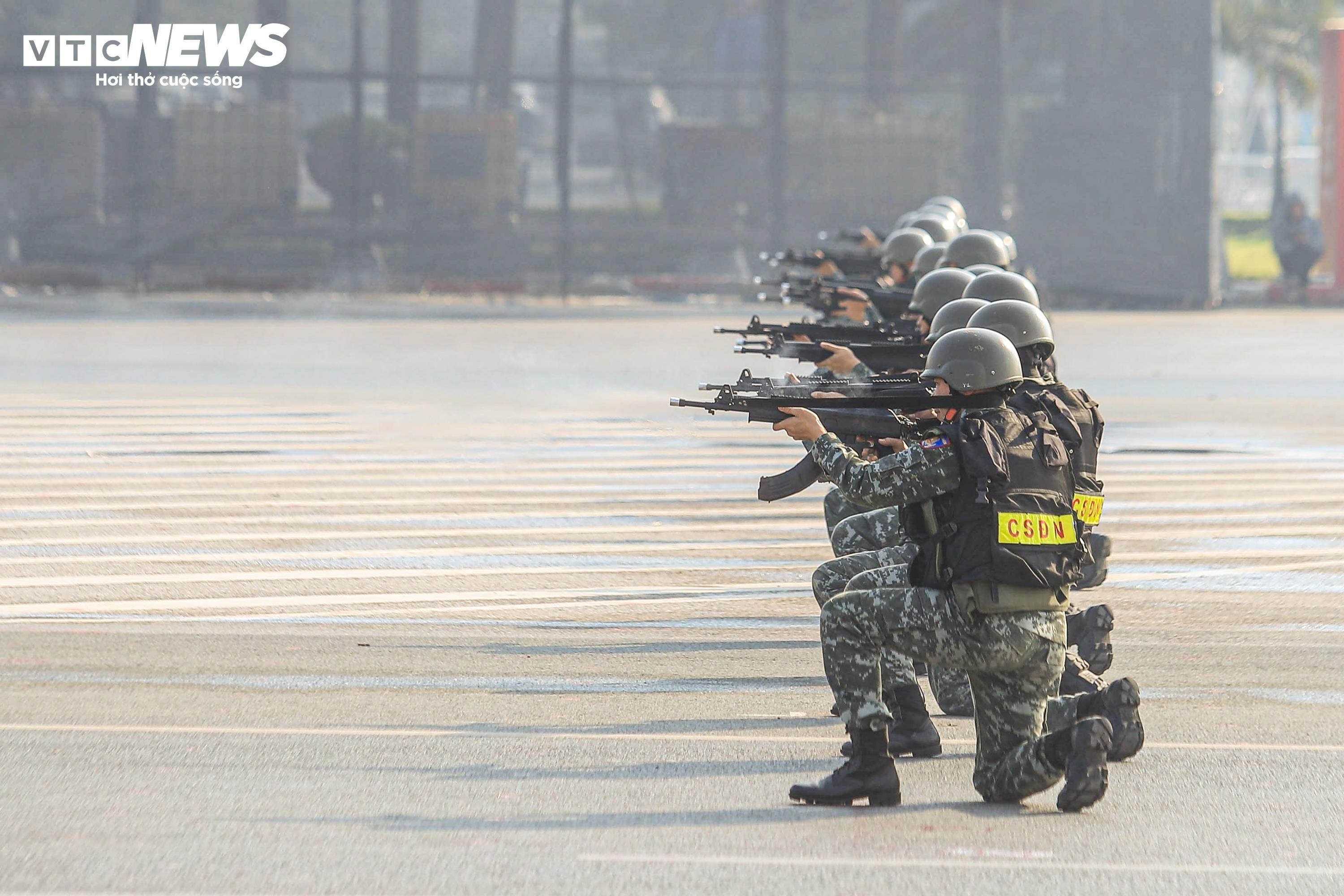 Cảnh sát diễn tập bắn súng, trấn áp tội phạm bảo đảm an ninh Đại hội XIV