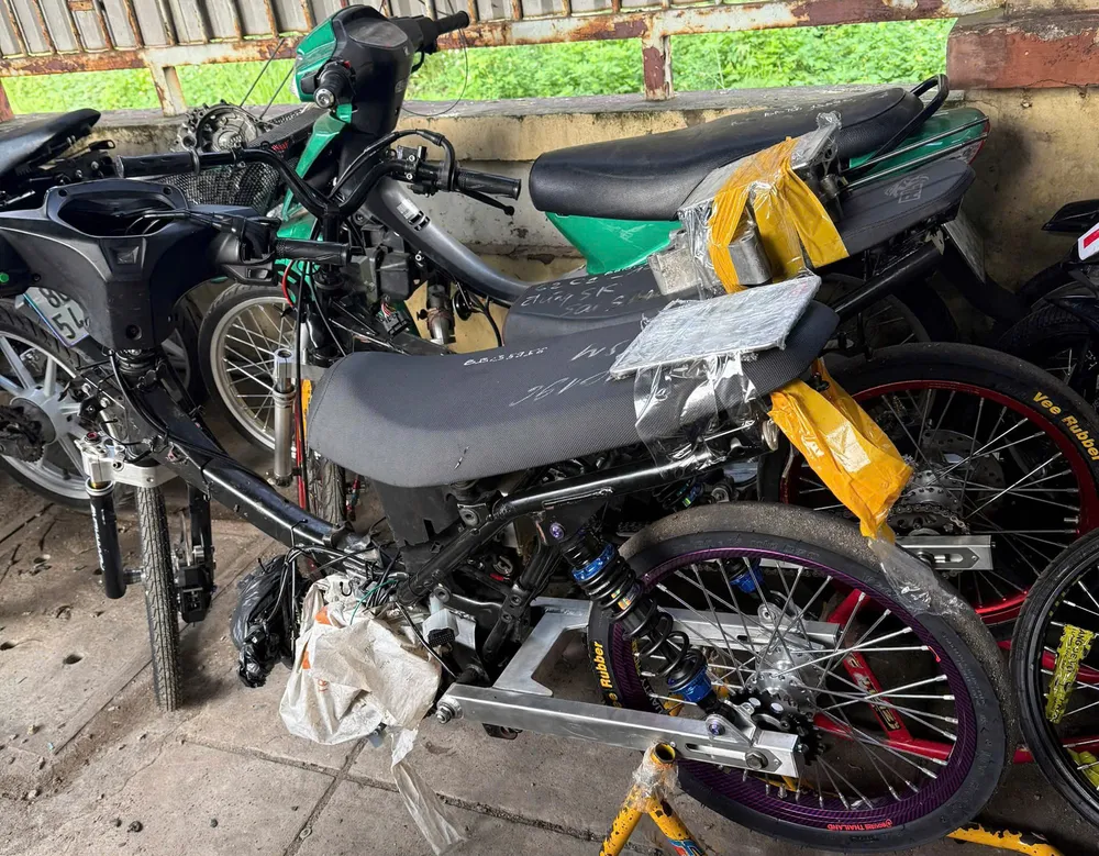 Tại một tiệm sửa xe do THĐ (32 tuổi, quê Nghệ An) làm chủ, lực lượng chức năng phát hiện gần 100 phụ tùng xe máy như dên, đế nồi, lòng, bình xăng… không rõ nguồn gốc cùng 20 mô tô các loại không có số khung, số máy, nghi bị “độ chế”.