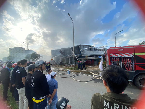 Cửa hàng hai tầng, mặt tiền rộng khoảng 20m, kết cấu cột sắt, vách tôn, bên trong chứa nhiều đồ đạc nội thất vệ sinh, vật liệu xây dựng và thiết bị điện tử. Rất may, khi cháy xảy ra không có người bị kẹt bên trong. Một số người dân cùng chủ cơ sở đã kịp đưa tài sản ra bãi cỏ đối diện.