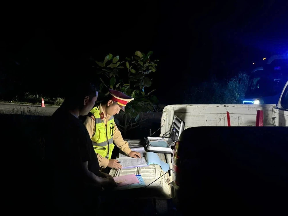 Lúc này, xe đang lưu thông hướng về Quốc lộ 14B. Chỉ sau chưa đầy 30 phút triển khai, lực lượng Cảnh sát giao thông đã xác minh, chốt chặn và dừng phương tiện kiểm tra. Cơ quan chức năng phát hiện trên xe chở đến 60 người, vượt 17 người so với quy định.