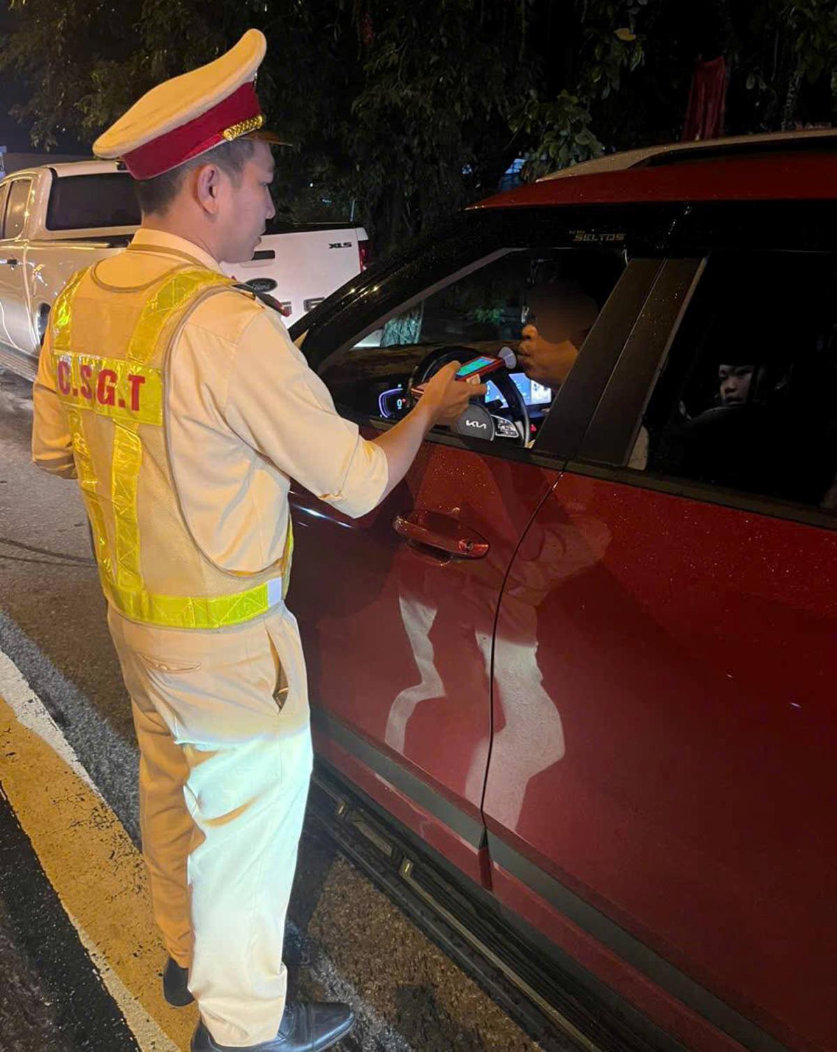 Lực lượng Cảnh sát giao thông kiểm tra nồng độ cồn.
