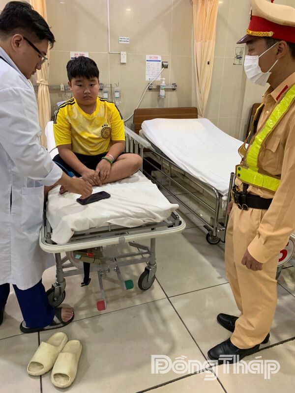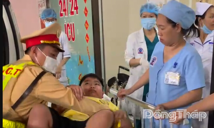 Lúc 17 giờ 45 phút ngày 25-2, chị Hà Thị Ch. (31 tuổi, quê tỉnh Vĩnh Long) gọi vào đường dây nóng Đội CSGT đường bộ cao tốc số 7, đề nghị hỗ trợ khẩn cấp đưa con trai là cháu Phan Tấn Ph. (12 tuổi, ngụ phường Long Đức, tỉnh Vĩnh Long) đi cấp cứu do bị ngã từ trên cây cao xuống đất.