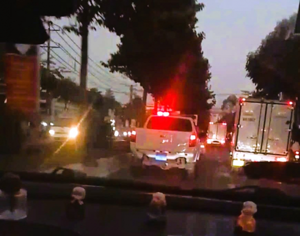 Hình ảnh CSGT dẫn đường đưa sản phụ bị vỡ ối đi bệnh viện cấp cứu được camera trên xe ô tô ghi lại.