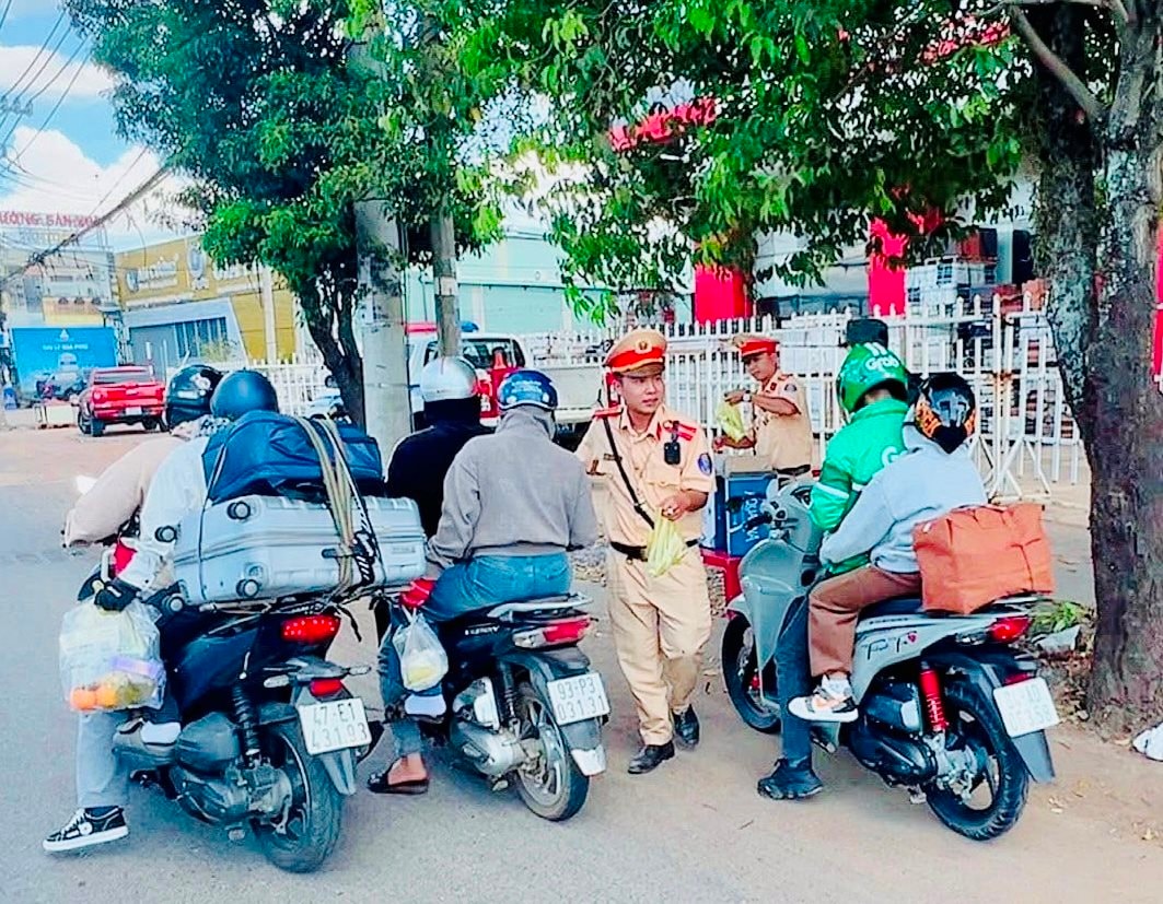 Cảnh sát giao thông Đồng Nai tích cực hỗ trợ người dân về quê đón Tết an toàn, mạnh khỏe.