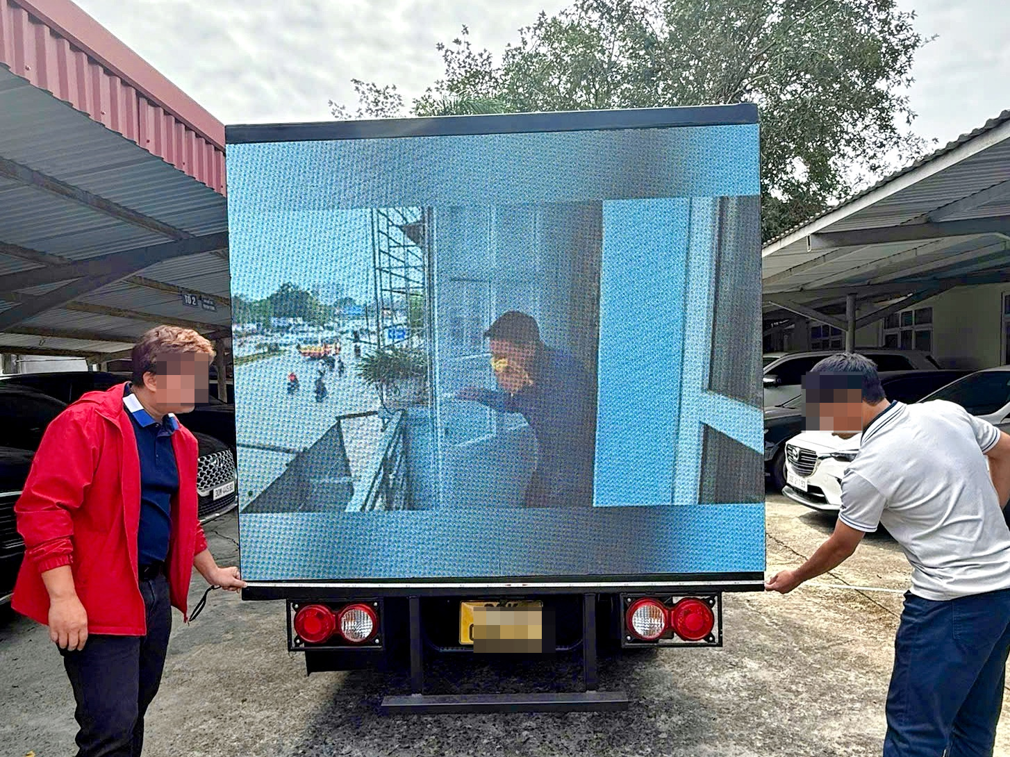 Xe tải lắp màn hình LED quanh thùng xe. Ảnh: Công an cung cấp