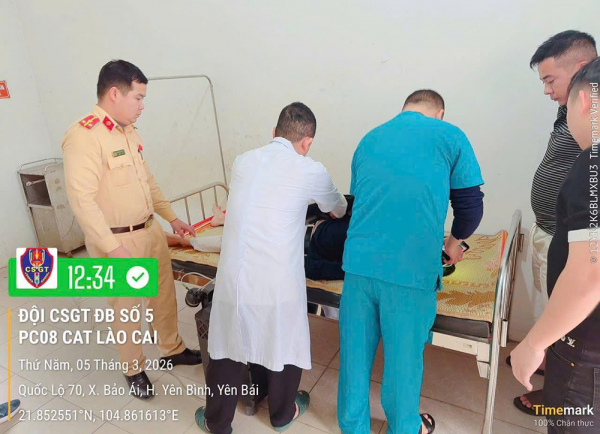 Khoảng 12h ngày 5/3, trong quá trình tuần tra, kiểm soát bảo đảm trật tự, ATGT trên tuyến Quốc lộ 70, Tổ công tác Đội CSGT đường bộ số 5, Phòng CSGT Công an tỉnh Lào Cai nhận được đề nghị hỗ trợ khẩn cấp từ người dân.