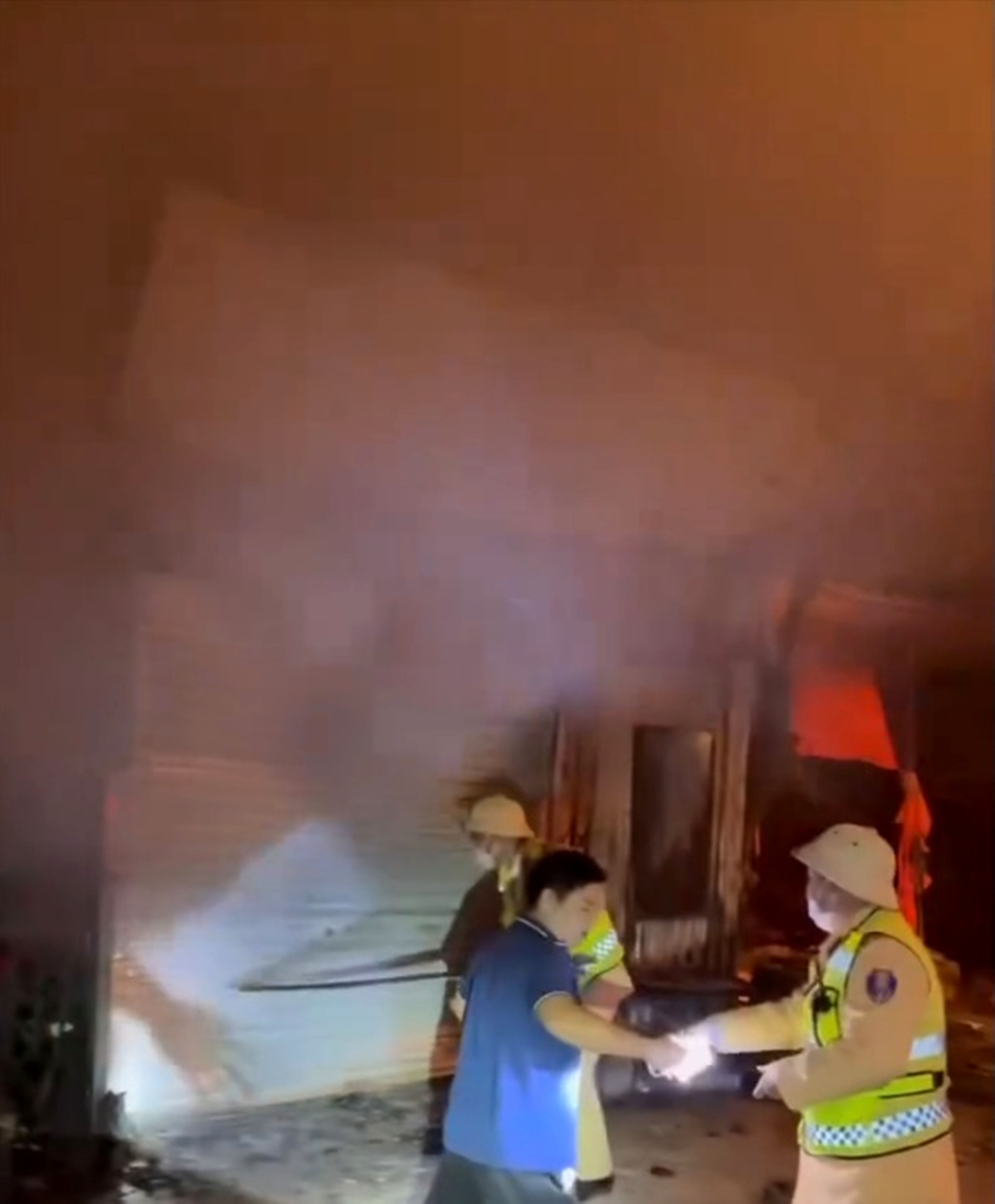 Trước tình huống khẩn cấp, Tổ công tác số 7 nhanh chóng tiếp cận hiện trường, phối hợp cùng người dân sử dụng các vật dụng phá cửa sắt, đồng thời hô hoán để những người đang ngủ bên trong thoát ra ngoài.